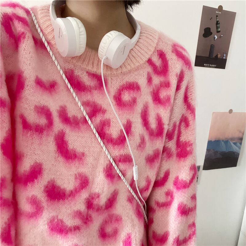 セーター ジャケット レディース韓国ファッショントレンドレオパードプリント柄ルーズ ピンク オータム 秋物 ウィンター 冬物 ボーイズ スタイル デーモン98532091763