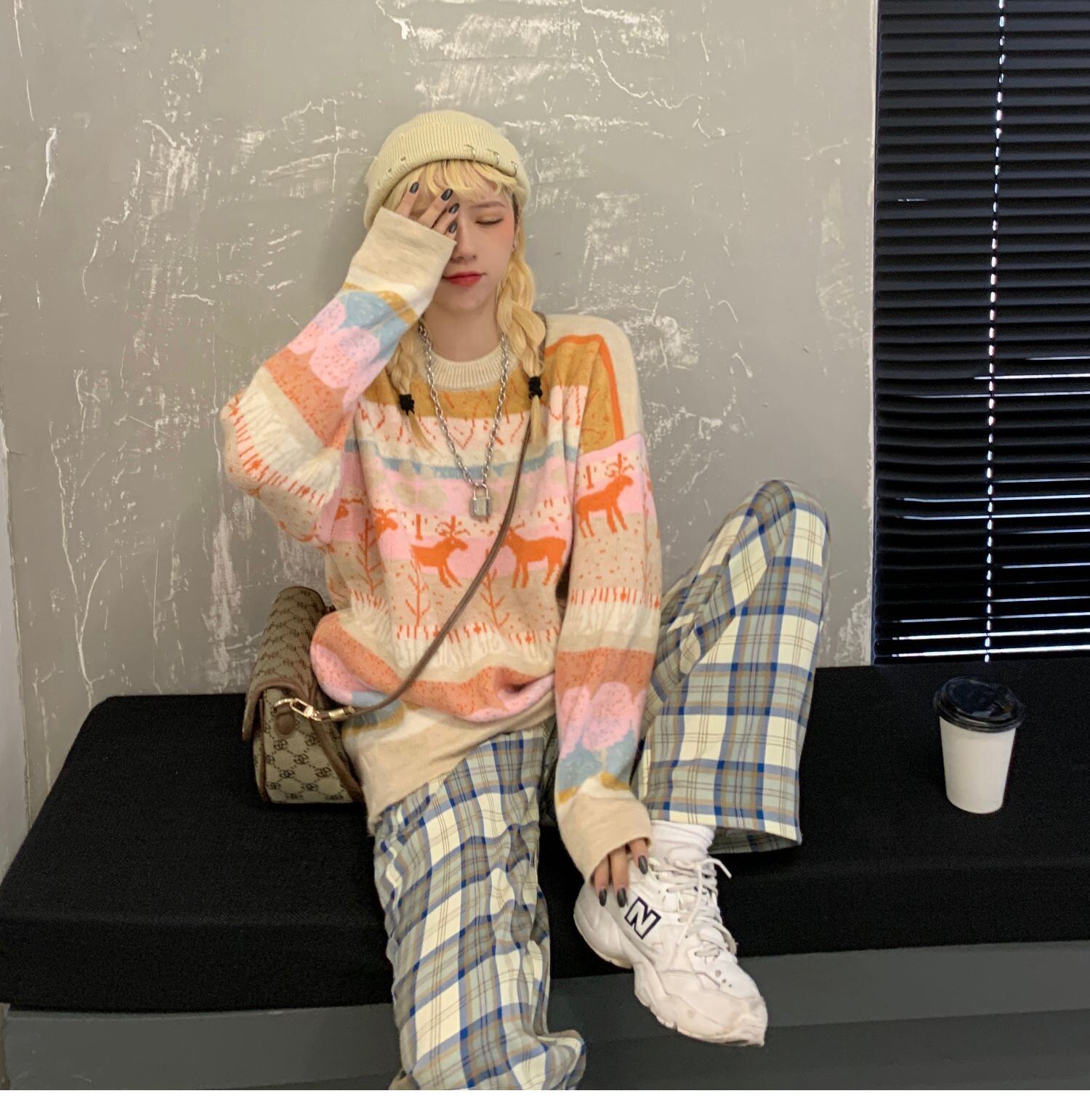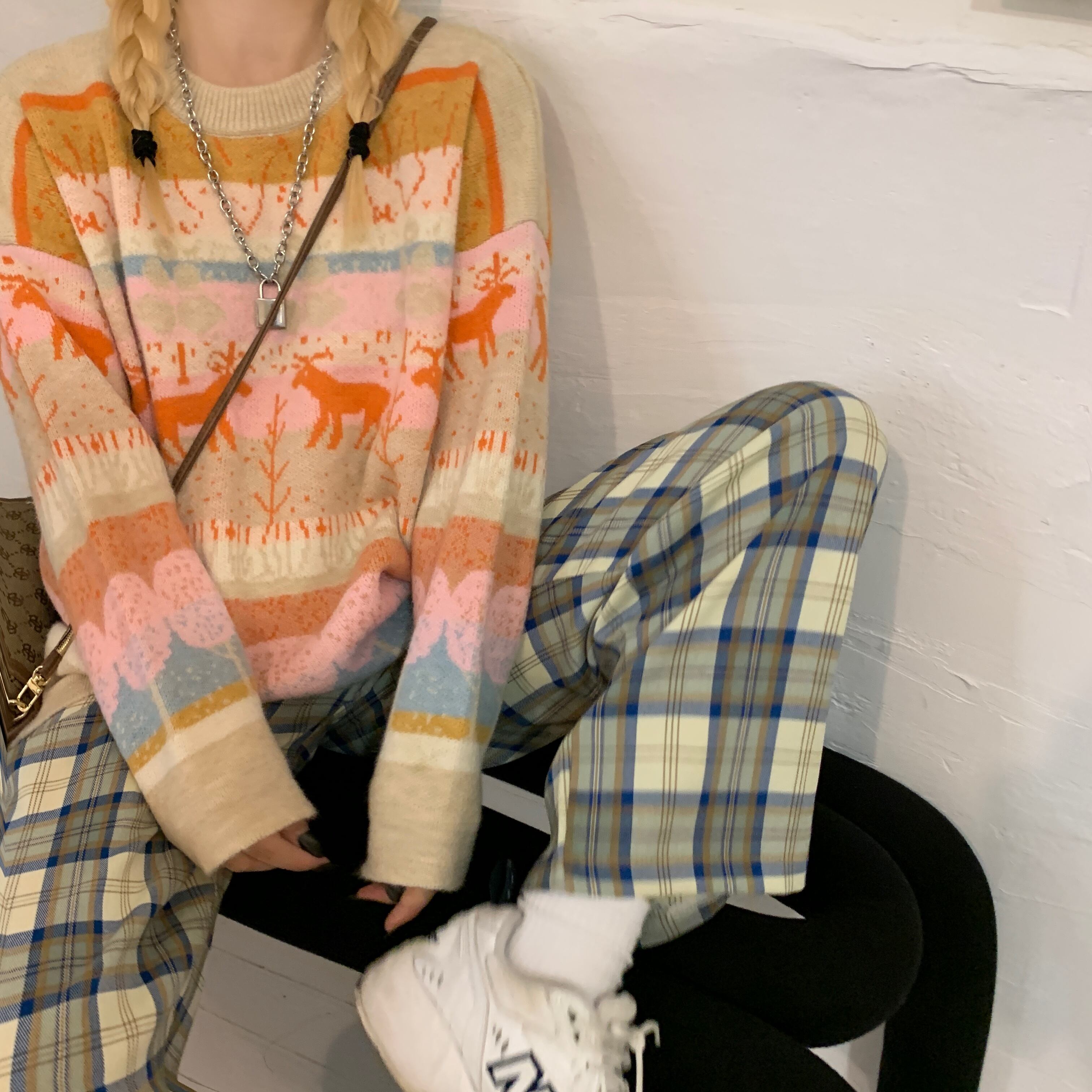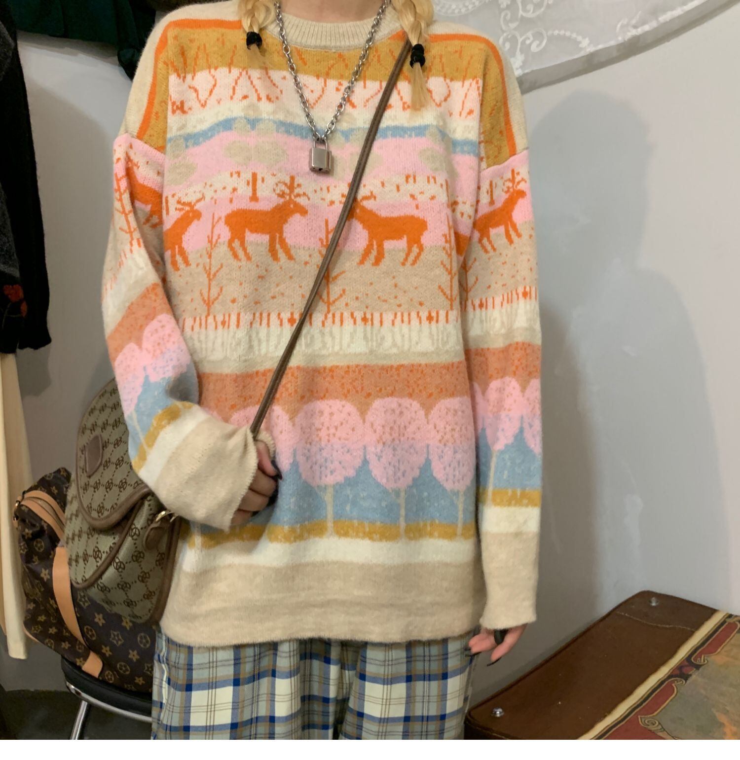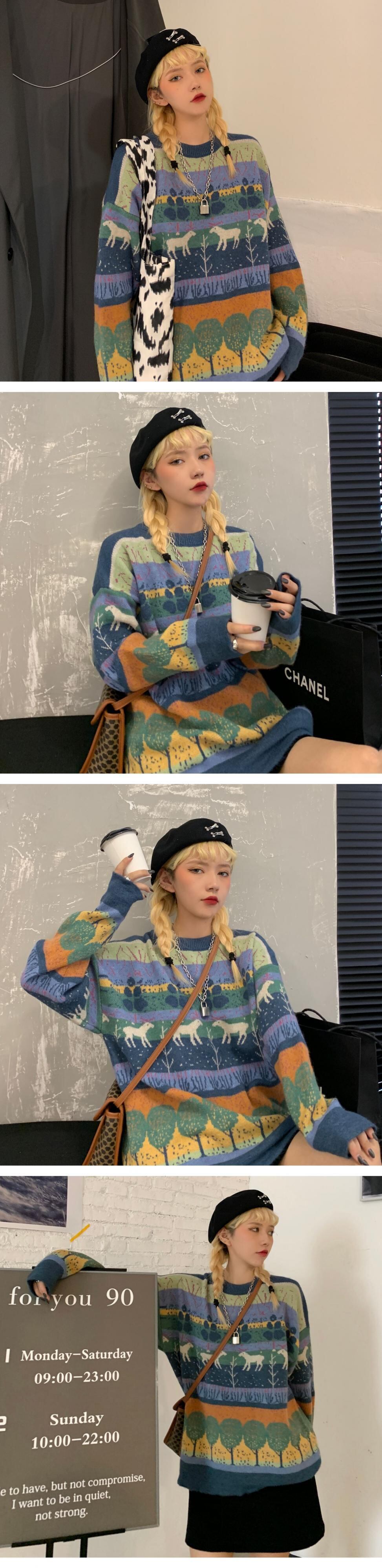 ヴィンテージセーター レディース秋物韓国ファッショントレンドルーズラウンドネックジャケット ロング オータム Oネック ビンテージ スタイル 長袖 デーモン33899480974