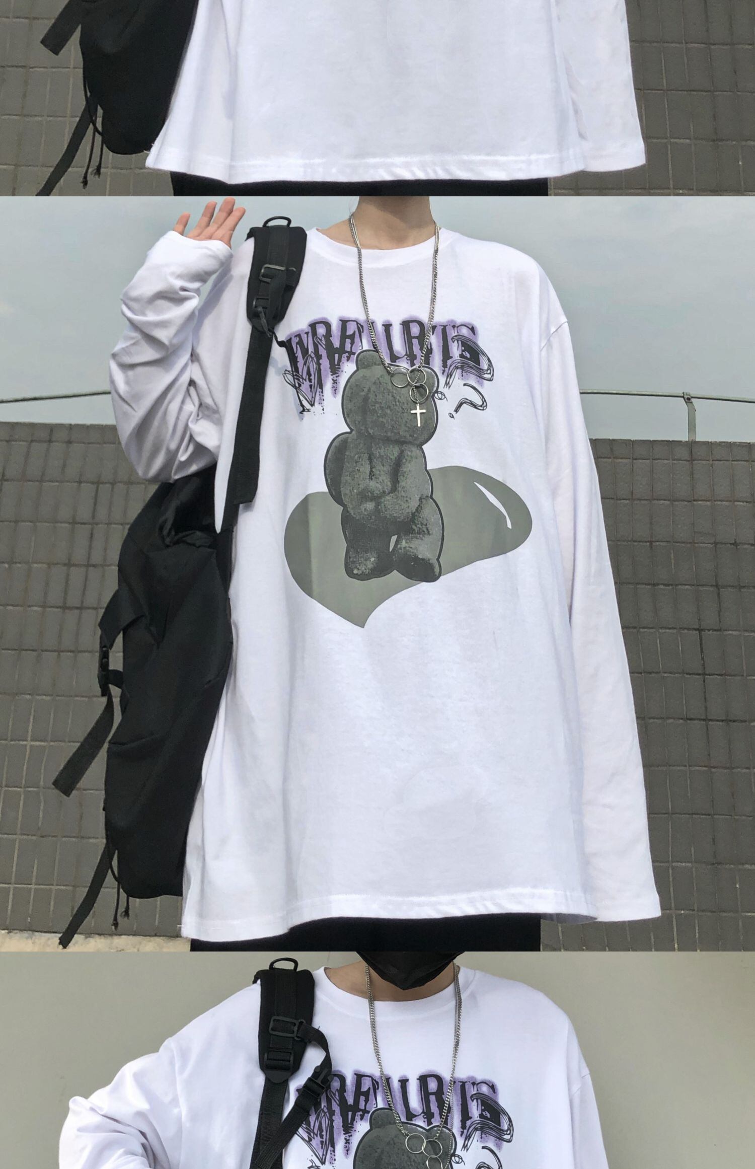 Tシャツレディース秋物韓国ファッショントレンドスタイルプリントルーズトップス ロング 原宿 オータム ボーイズ 長袖 デーモン65379956500