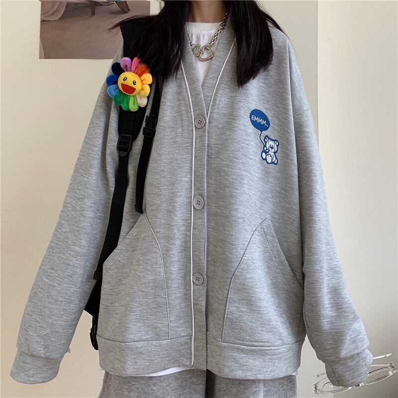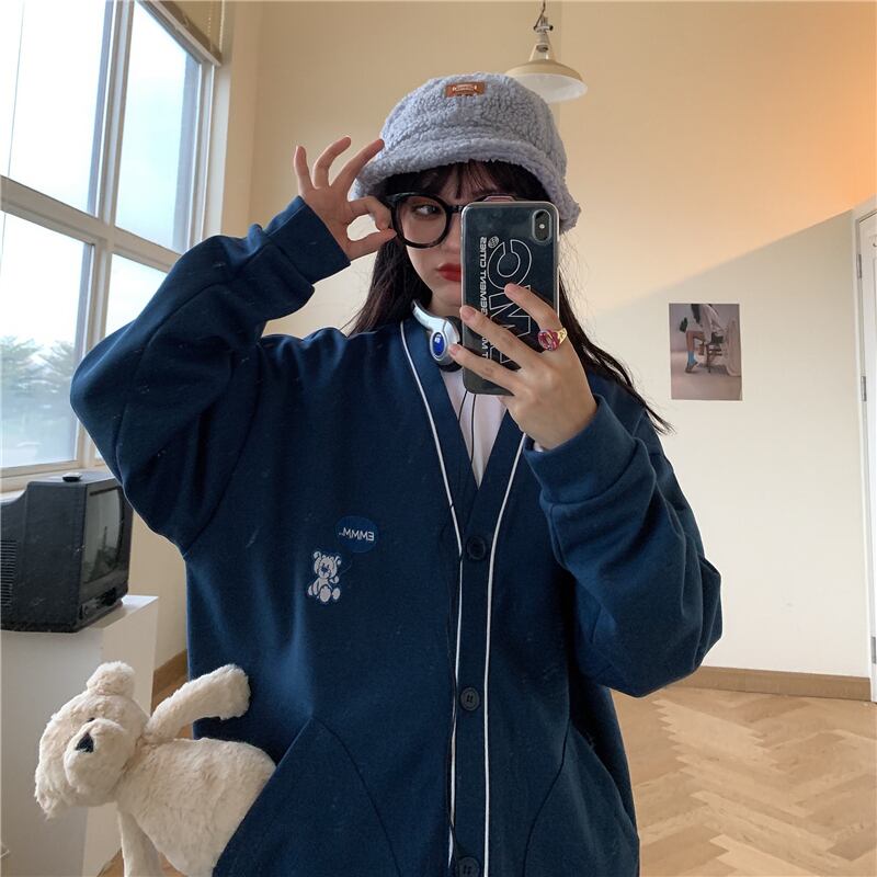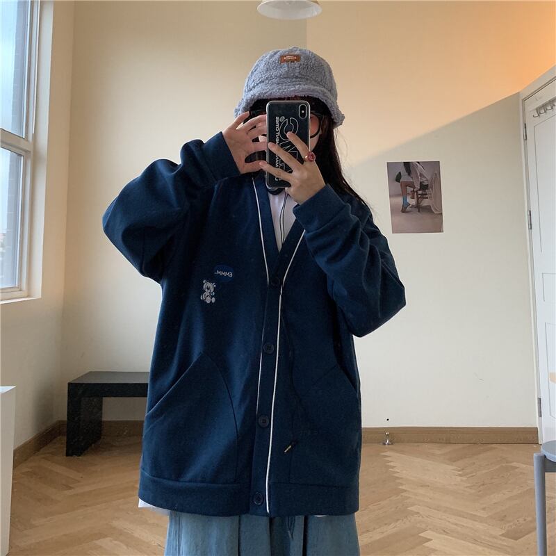 秋物ウィンタージャケット レディース韓国ファッショントレンドVネックルーズセーター カーディガン ロング オータム 冬物 スタイル 長袖 デーモン15760015988