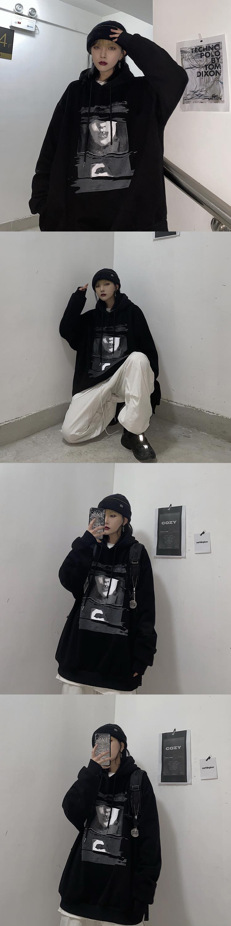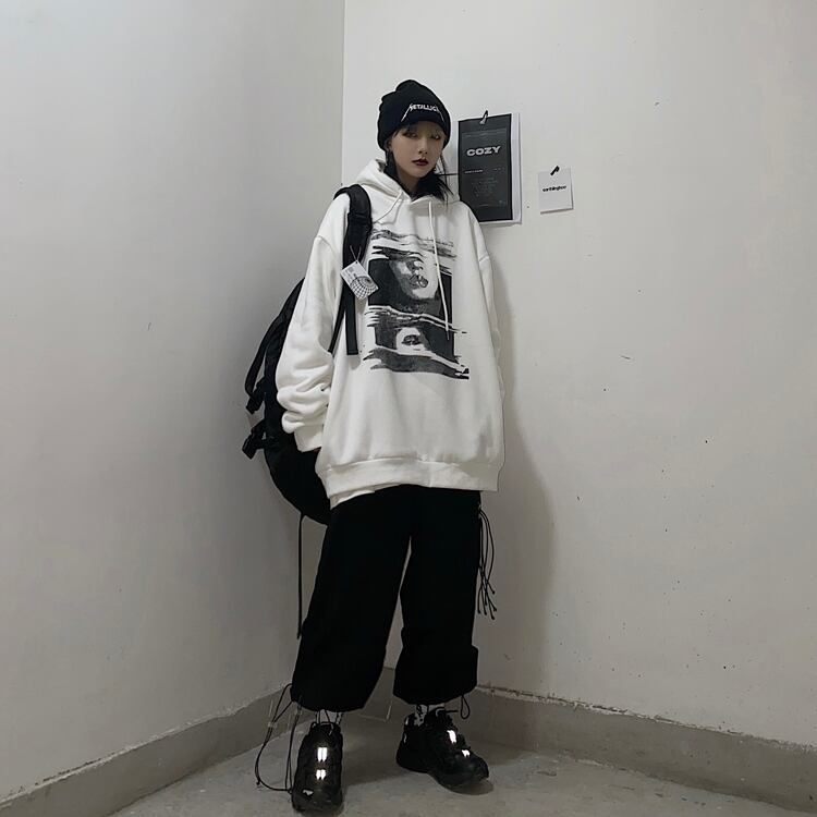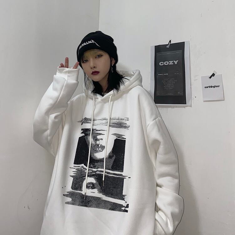 セーター レディース秋物ウィンター韓国ファッショントレンドスタイルプリントルーズフードジャケット ロング 原宿 オータム 冬物 長袖 デーモン99686305079