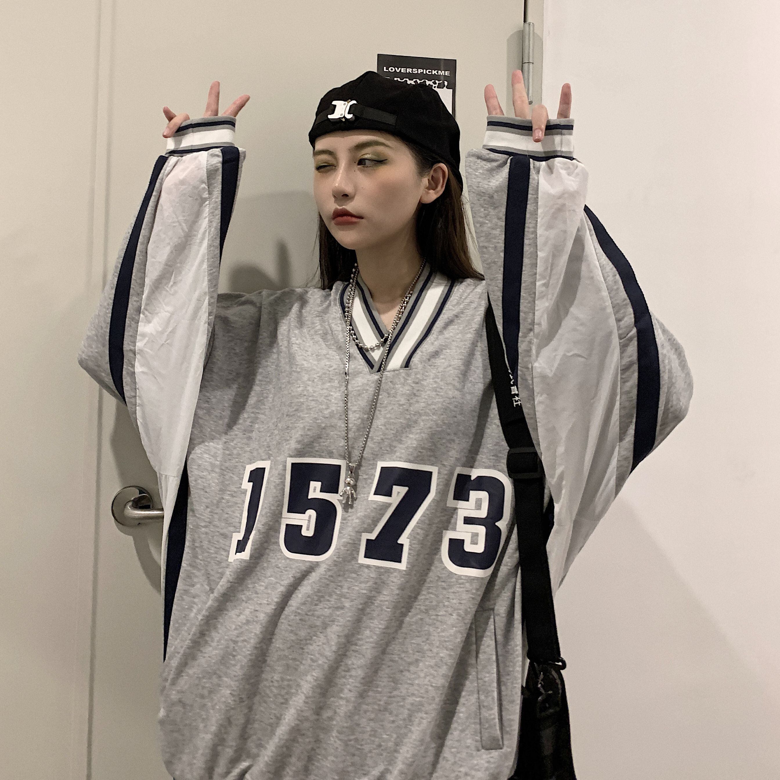 セーター ジャケット 秋物韓国ファッショントレンドスタンダードVネックカラールーズトップス ロング レトロ オータム スタイル 長袖 デーモン64302296391