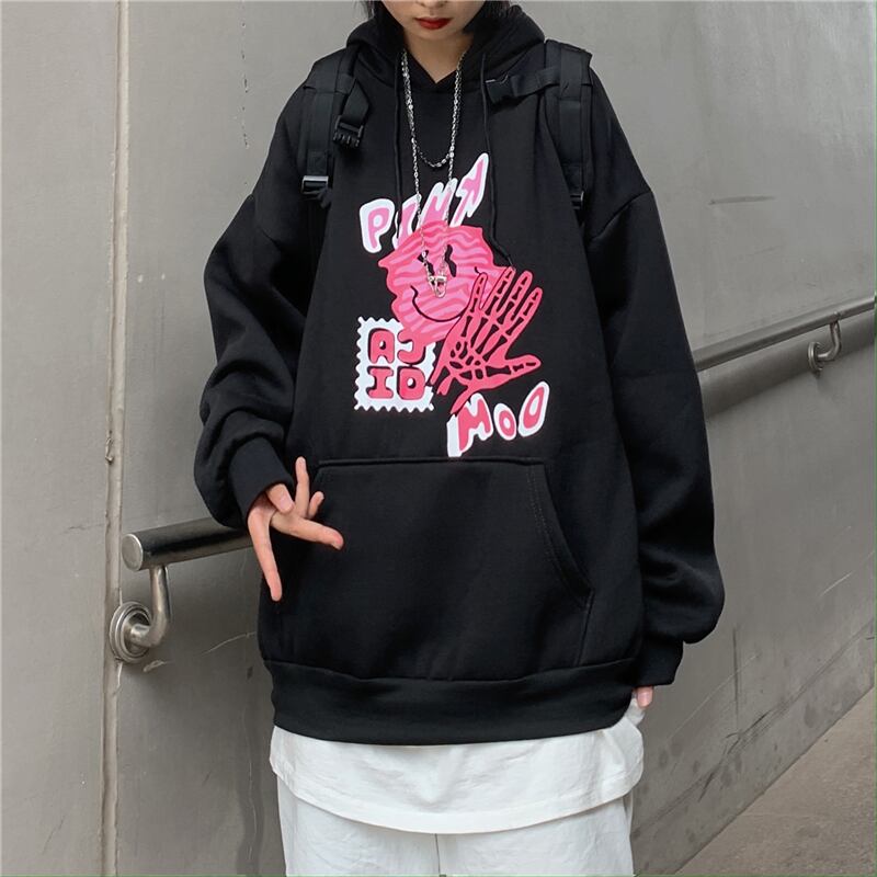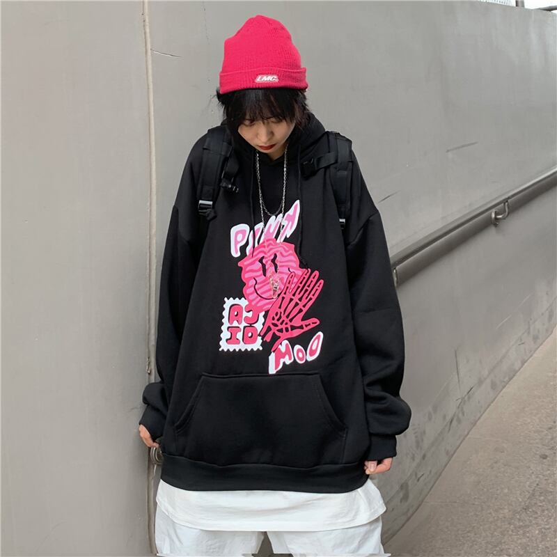 セーター レディース秋物ウィンター韓国ファッショントレンドスタイルプリント柄ルーズフードジャケット 原宿 オータム 冬物 デーモン65040706523