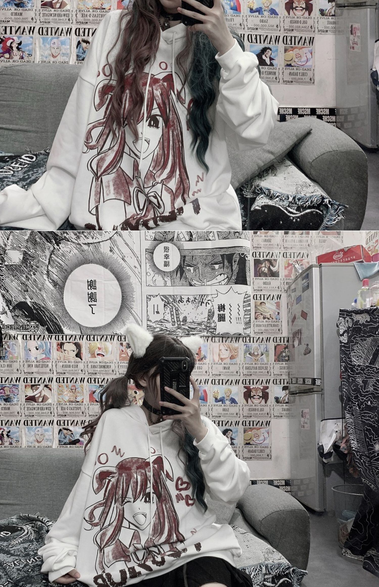 フードセーター レディース秋物ウィンター韓国ファッショントレンドダークプリント柄ルーズトップス ロング オータム 冬物 ボーイズ スタイル 長袖 デーモン2109394510
