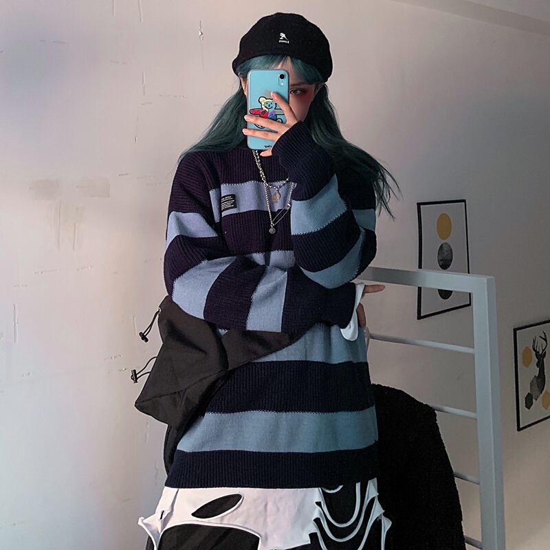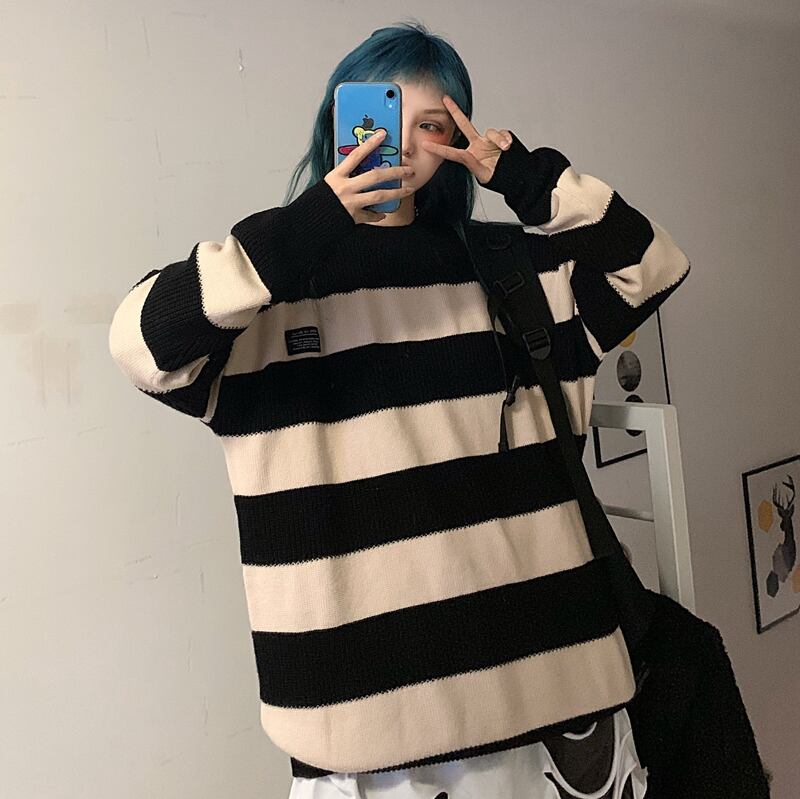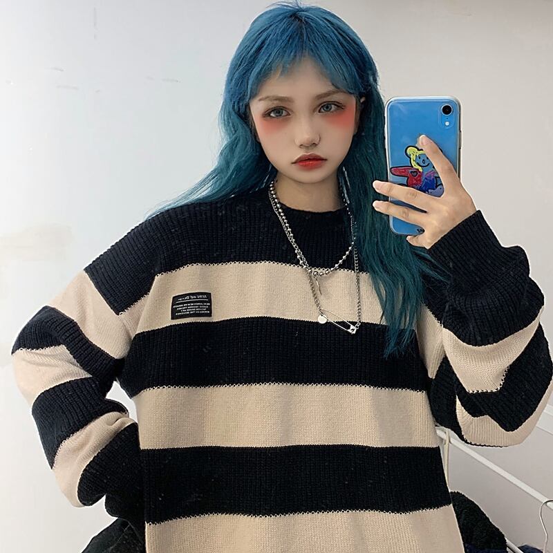 ストライプセーター レディース秋物ウィンター韓国ファッショントレンドスタイルルーズコート オータム 冬物 ボーイズ デーモン76552771430