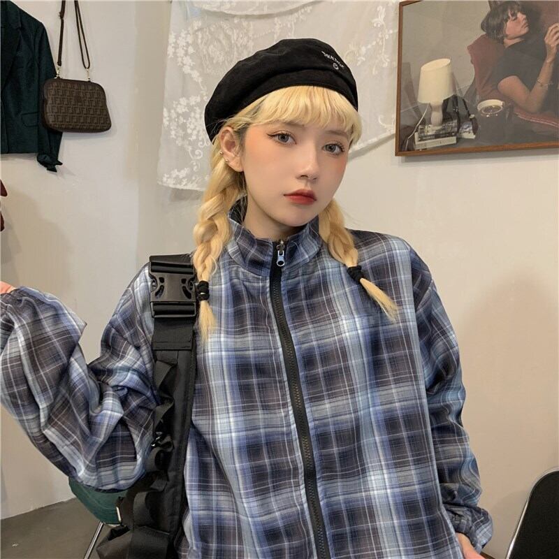 格子柄シャツ 秋物韓国ファッショントレンドルーズ長袖スリーブジャケット ロング オータム ボーイズ デーモン26842128244