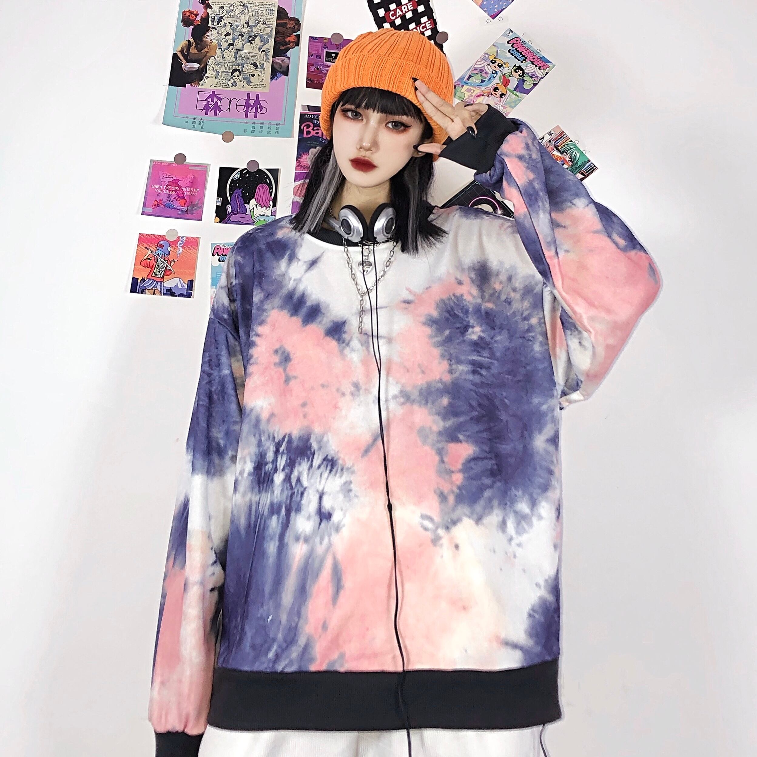 秋物トップス 韓国ファッショントレンドルーズラウンドネックフードセーター コート ロング 原宿 オータム Oネック スタイル 長袖 デーモン64955894084