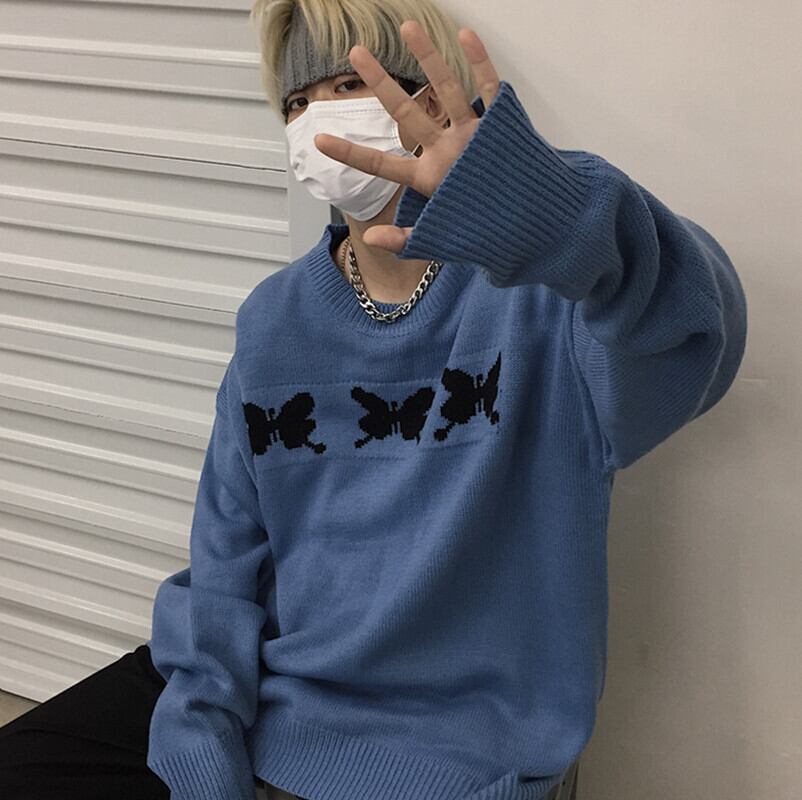 ショートニットセーター レディース秋物韓国ファッショントレンドButterflyデザイン ジャケット ルーズ ロング オータム スタイル 長袖 デーモン46505500252