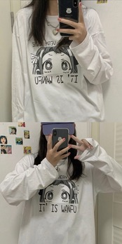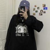 トップス レディース秋物韓国ファッショントレンドスタイルプリントルーズ長袖スリーブTシャツ ロング 原宿 オータム ボーイズ デーモン95728675199