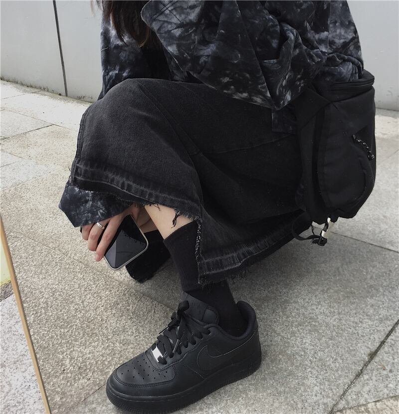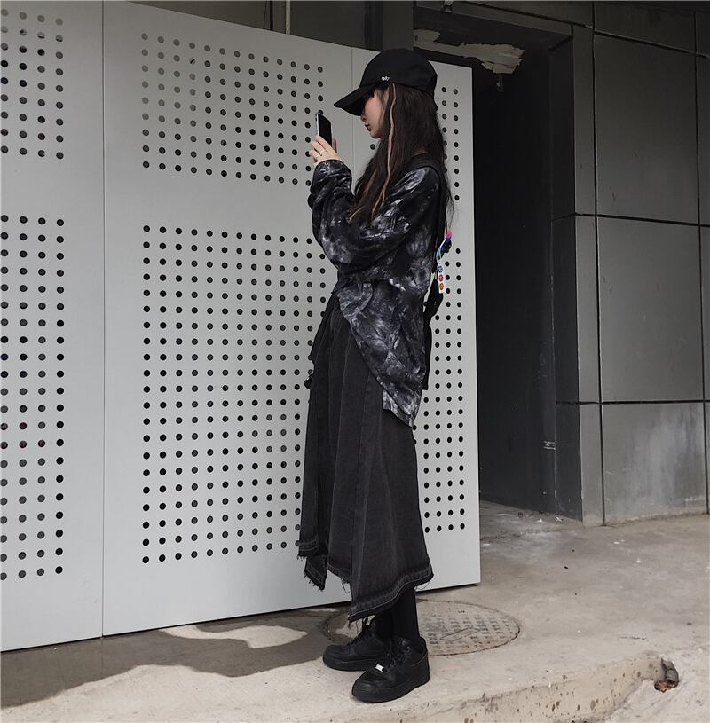 スカート レディース秋物韓国ファッショントレンドスリットハイウェストウェストブラックAライン オータム スタイル ウエスト デーモン92140428297