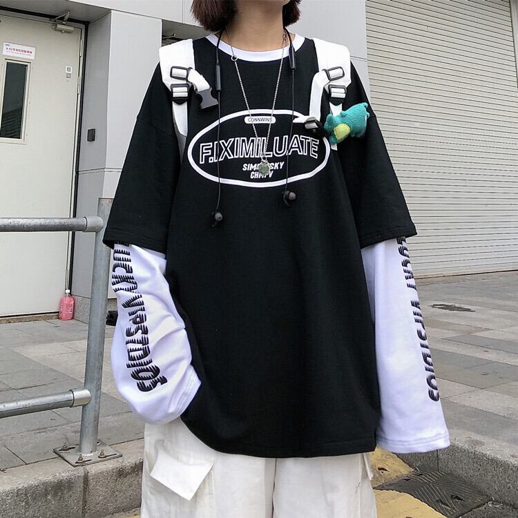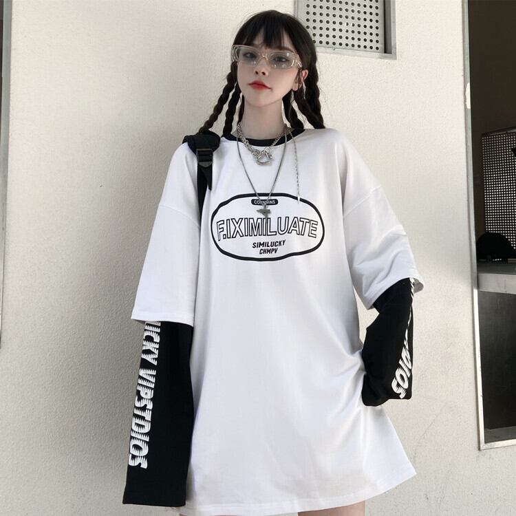 秋物韓国ファッショントレンドスタイルトップス ルーズプリントTシャツレディース ロング 原宿 オータム 長袖 デーモン55181143469
