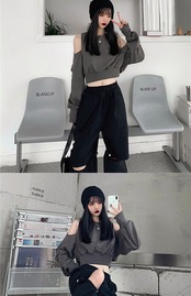 トップス 秋物韓国ファッションスタイルトレンドショートソリッド カラールーズセーター ロング オータム ソリッドカラー 長袖 デーモン86540050