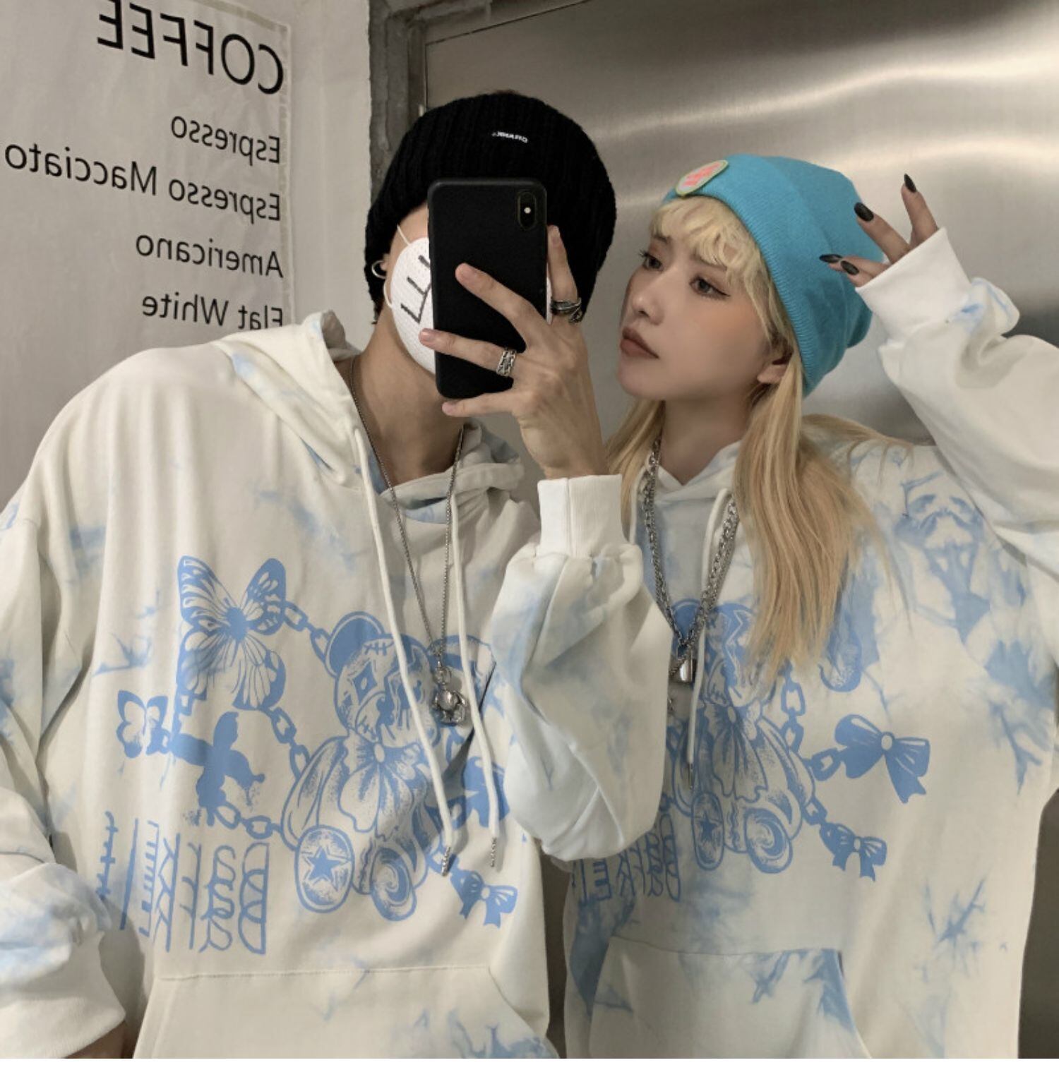 秋物ブラウス 韓国ファッショントレンドプリントルーズフードセーター ロング オータム スタイル 長袖 デーモン12253304200