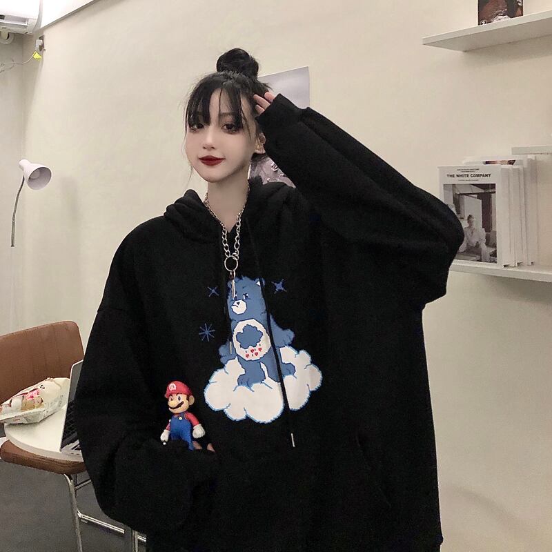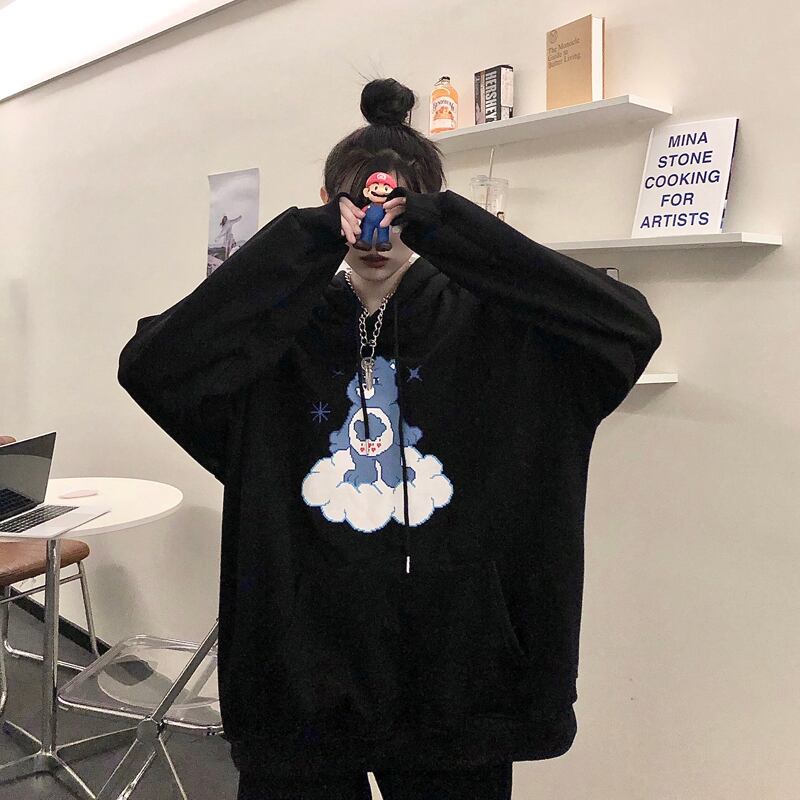 セーター レディース秋物ウィンター韓国ファッショントレンドプリント柄ルーズ厚みフードジャケット オータム 冬物 ボーイズ スタイル デーモン98413599415