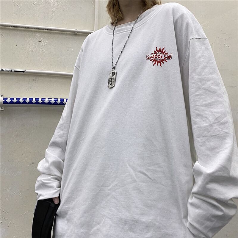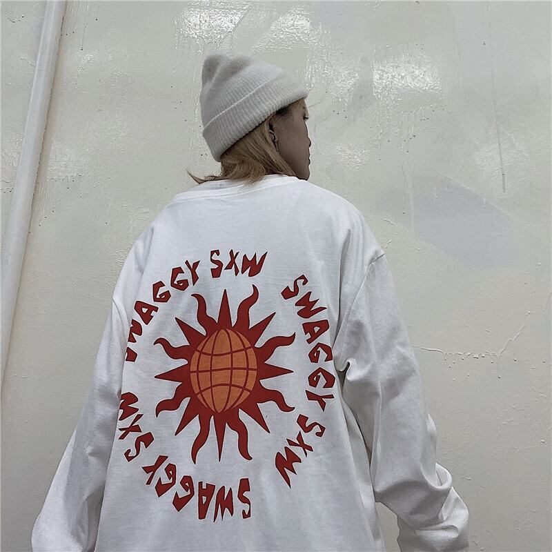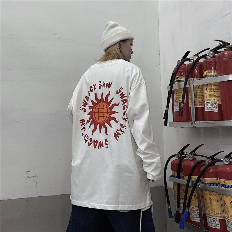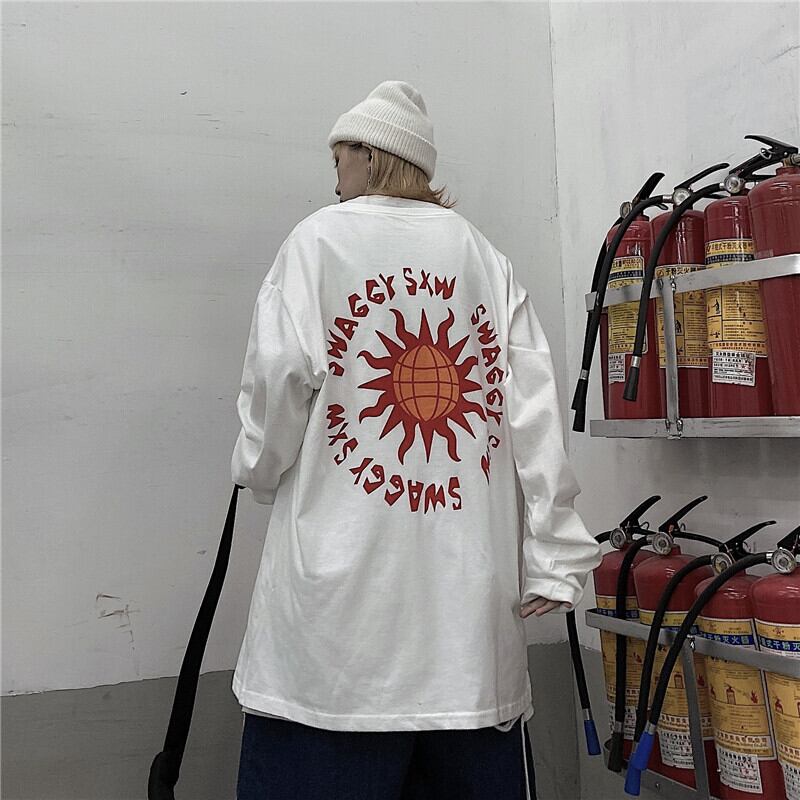 Tシャツトップス レディース秋物韓国ファッショントレンドプリント柄ルーズゆったり ロング 原宿 オータム スタイル 長袖 デーモン7062749706