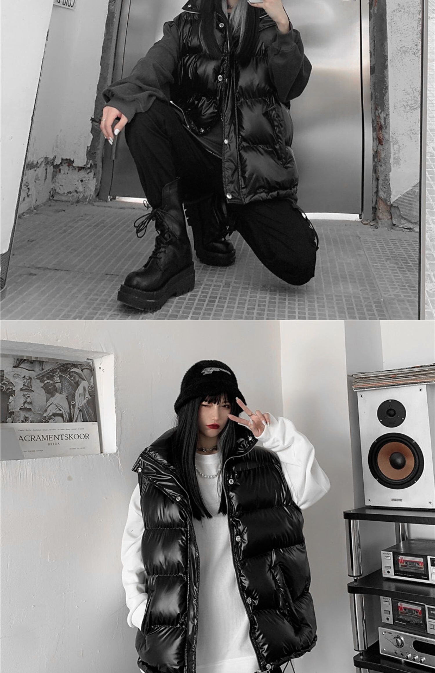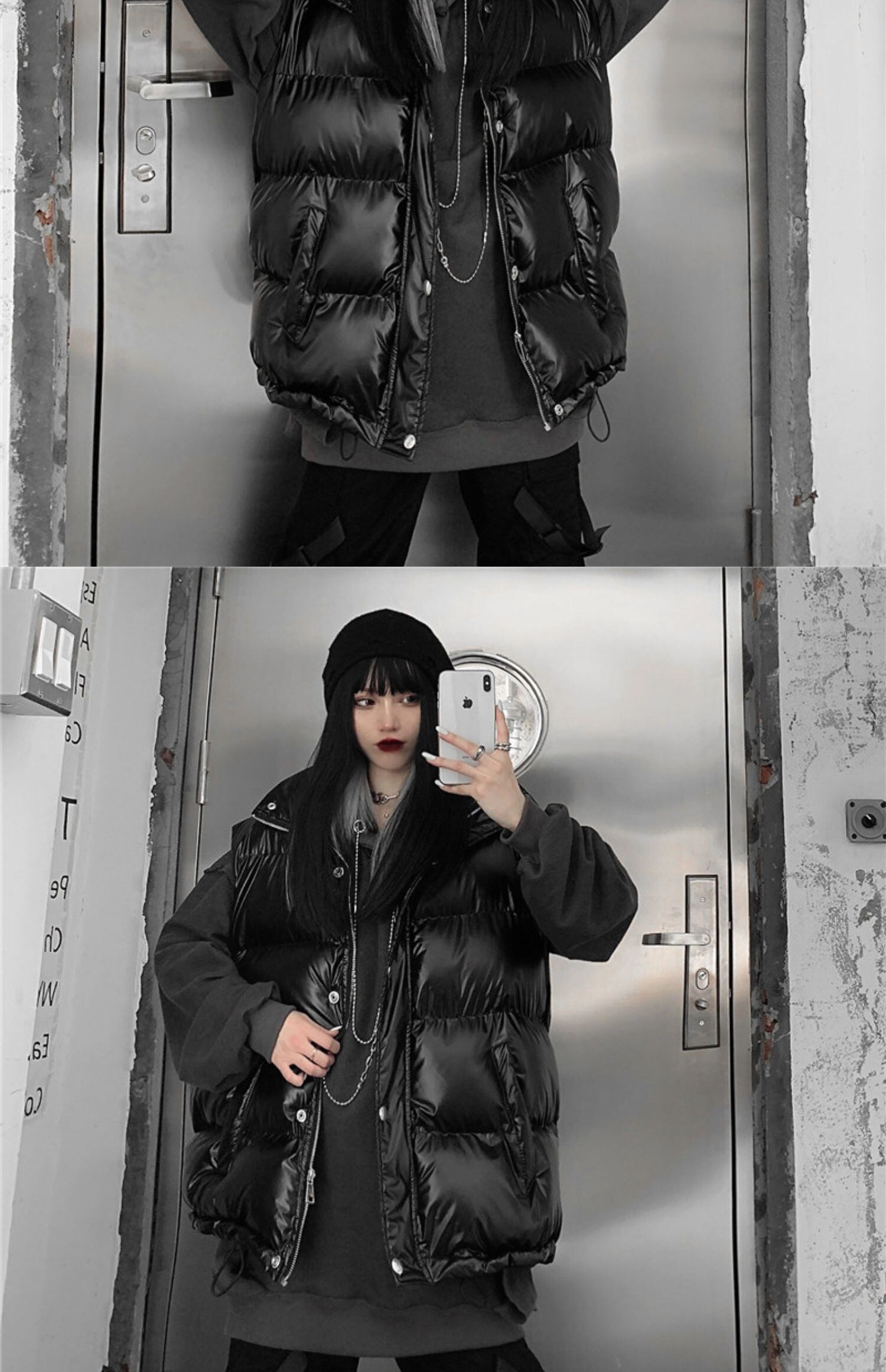 ウィンターレディース韓国ファッショントレンドブラックルーズジャケット コットン 冬物 スタイル デーモン63954753674