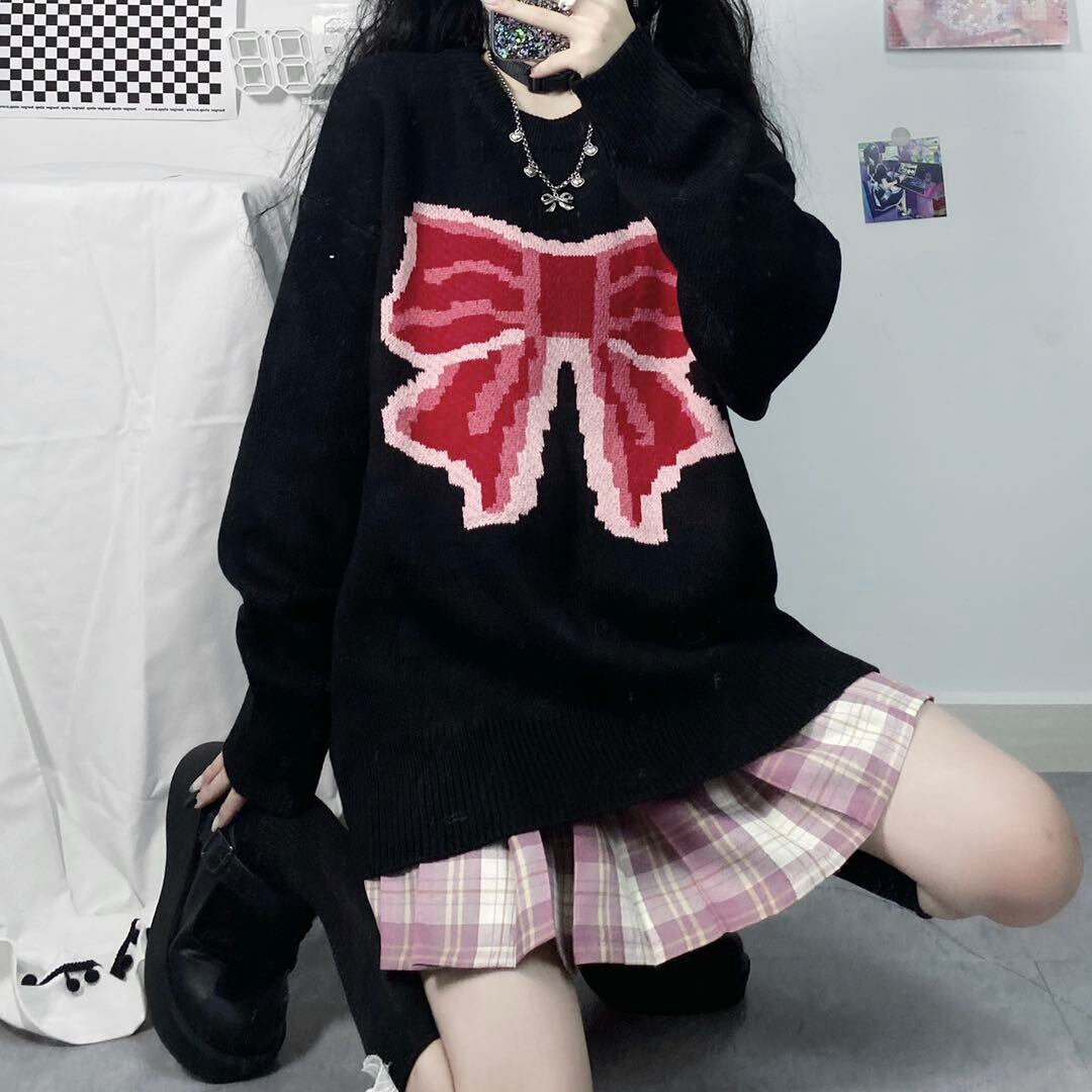ニットセーター 秋物レディース韓国ファッショントレンドルーズプルオーバー コート リボン オータム ボーイズ スタイル デーモン7929707925