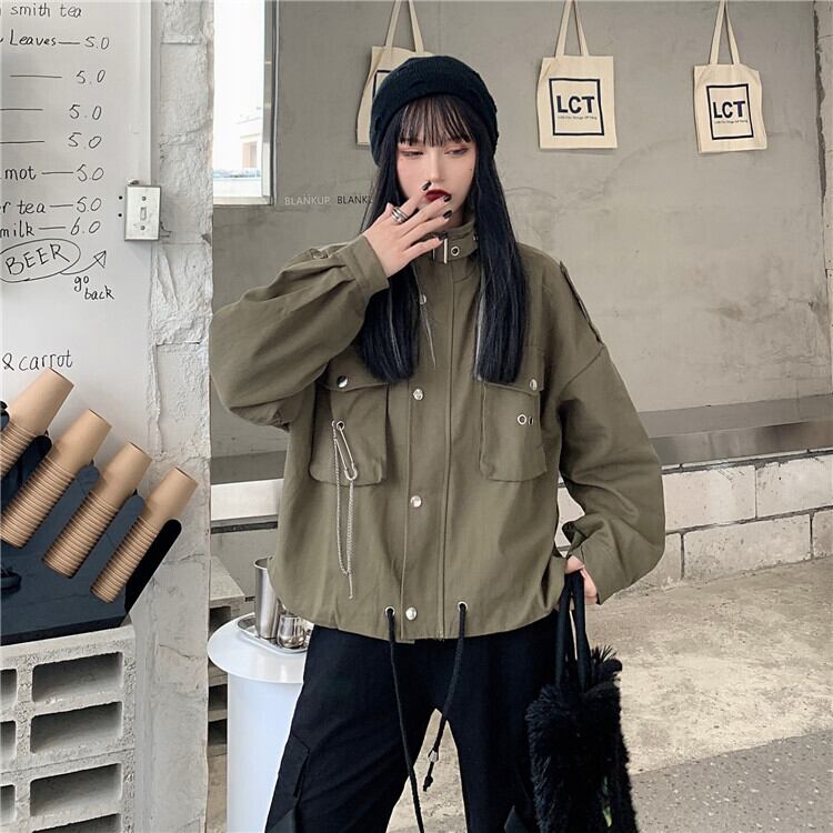 ジャケット レディース秋物韓国ファッショントレンドスタンダードショートルーズカジュアルトップス レトロ オータム スタイル デーモン82902900772