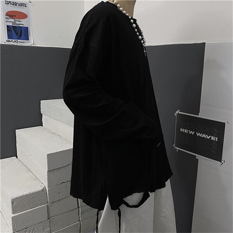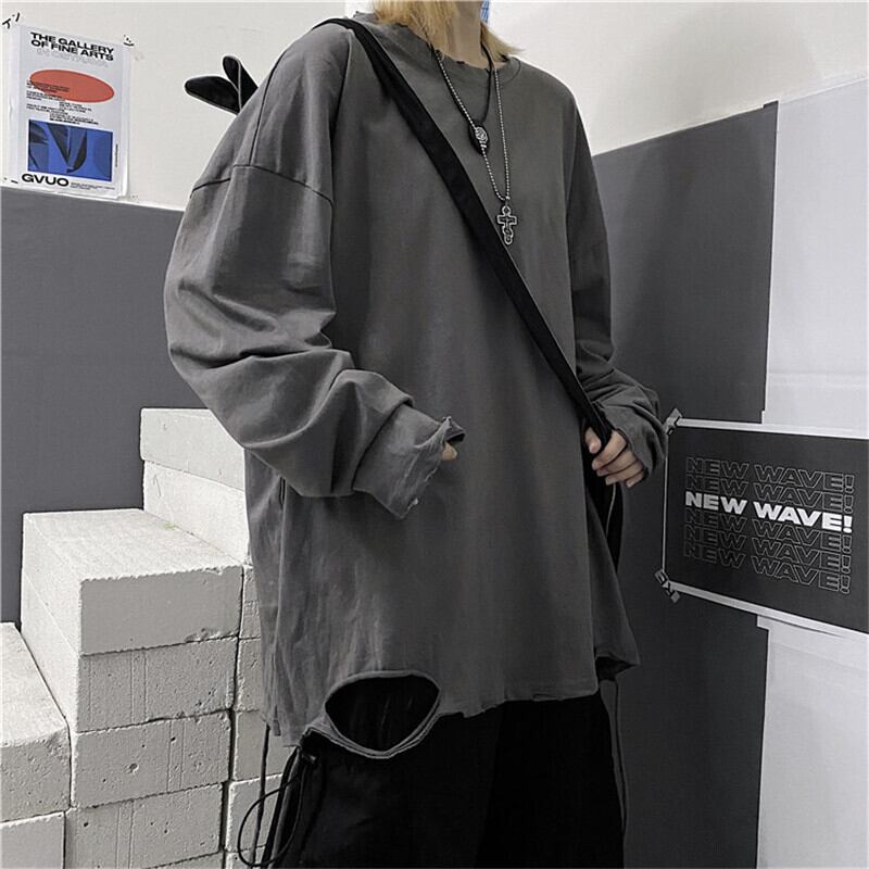 Tシャツシャツ レディース秋物韓国ファッショントレンドホワイトルーズゆったりトップス ロング 原宿 オータム スタイル 長袖 デーモン10181598098