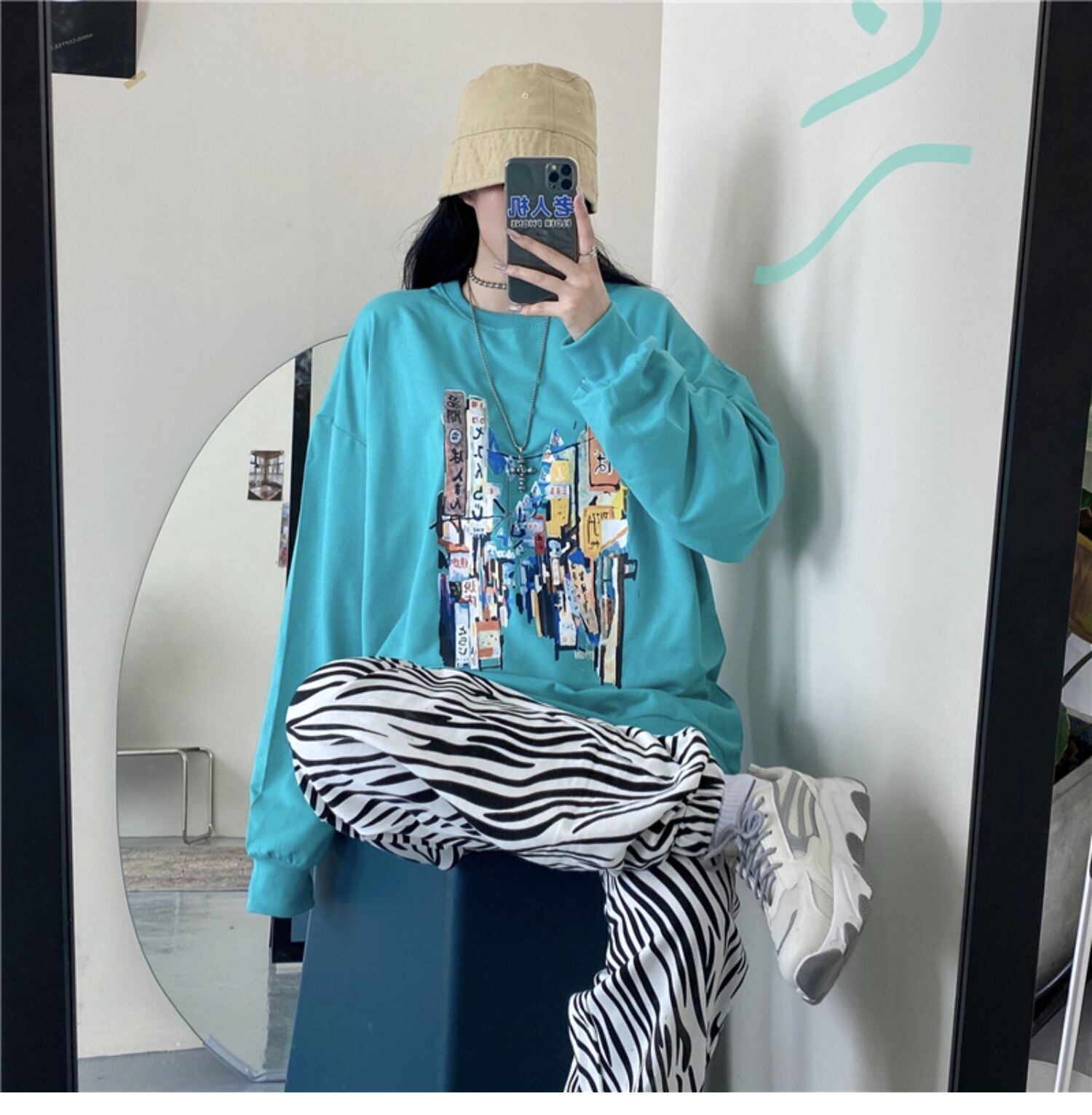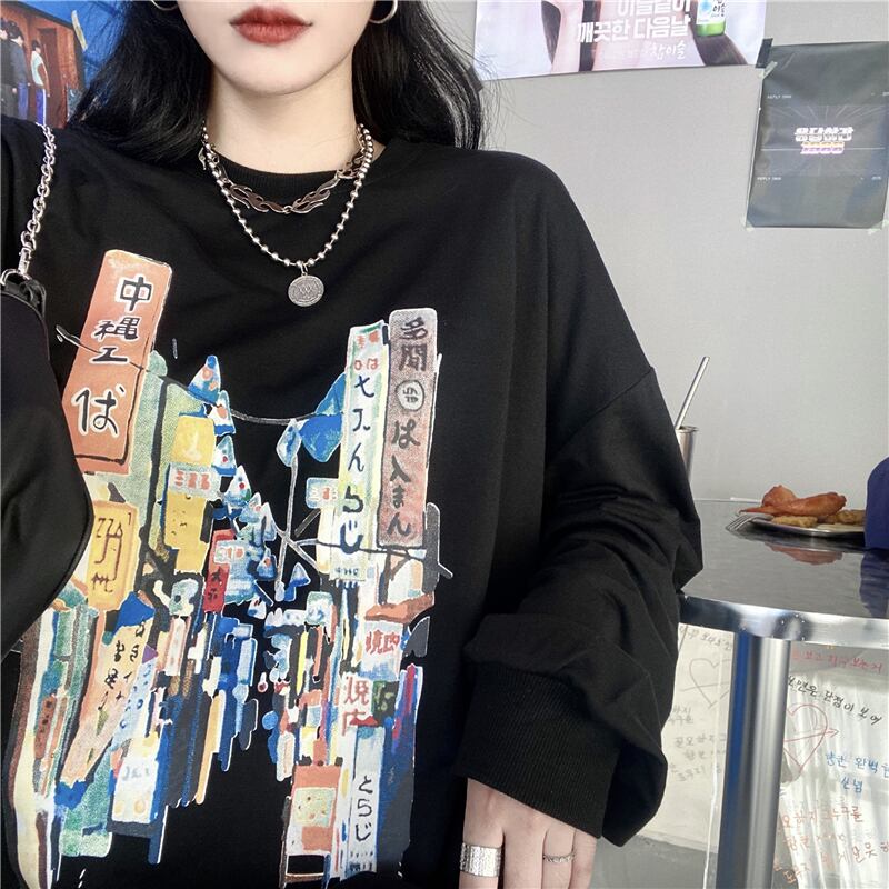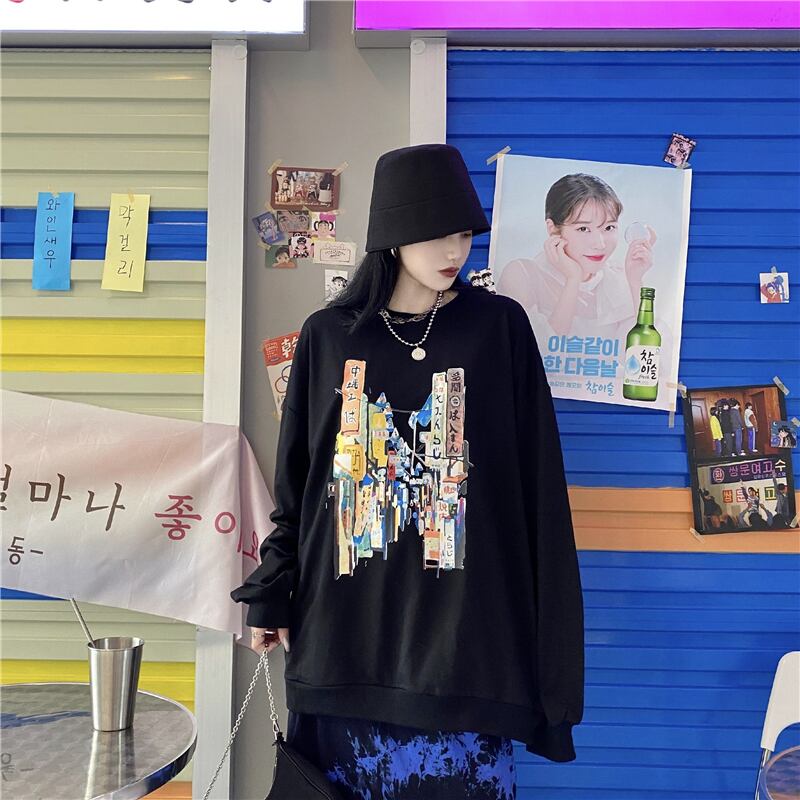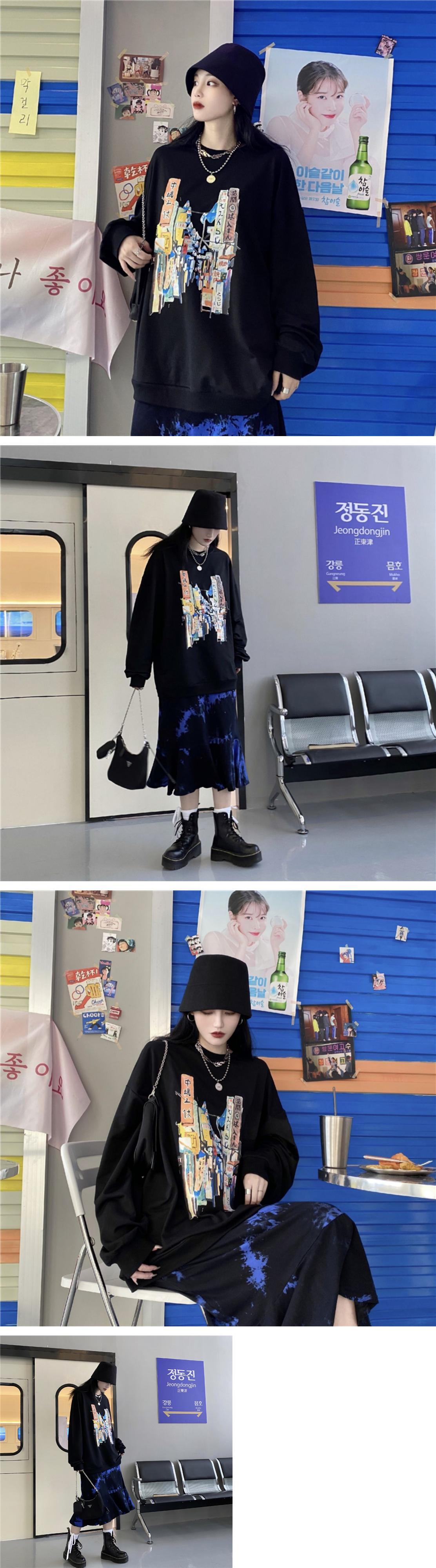 セーター レディース秋物韓国ファッショントレンドスタンダードプリントトップス ルーズラウンドネックジャケット ロング レトロ オータム Oネック スタイル 長袖 デーモン63958732744