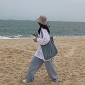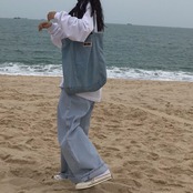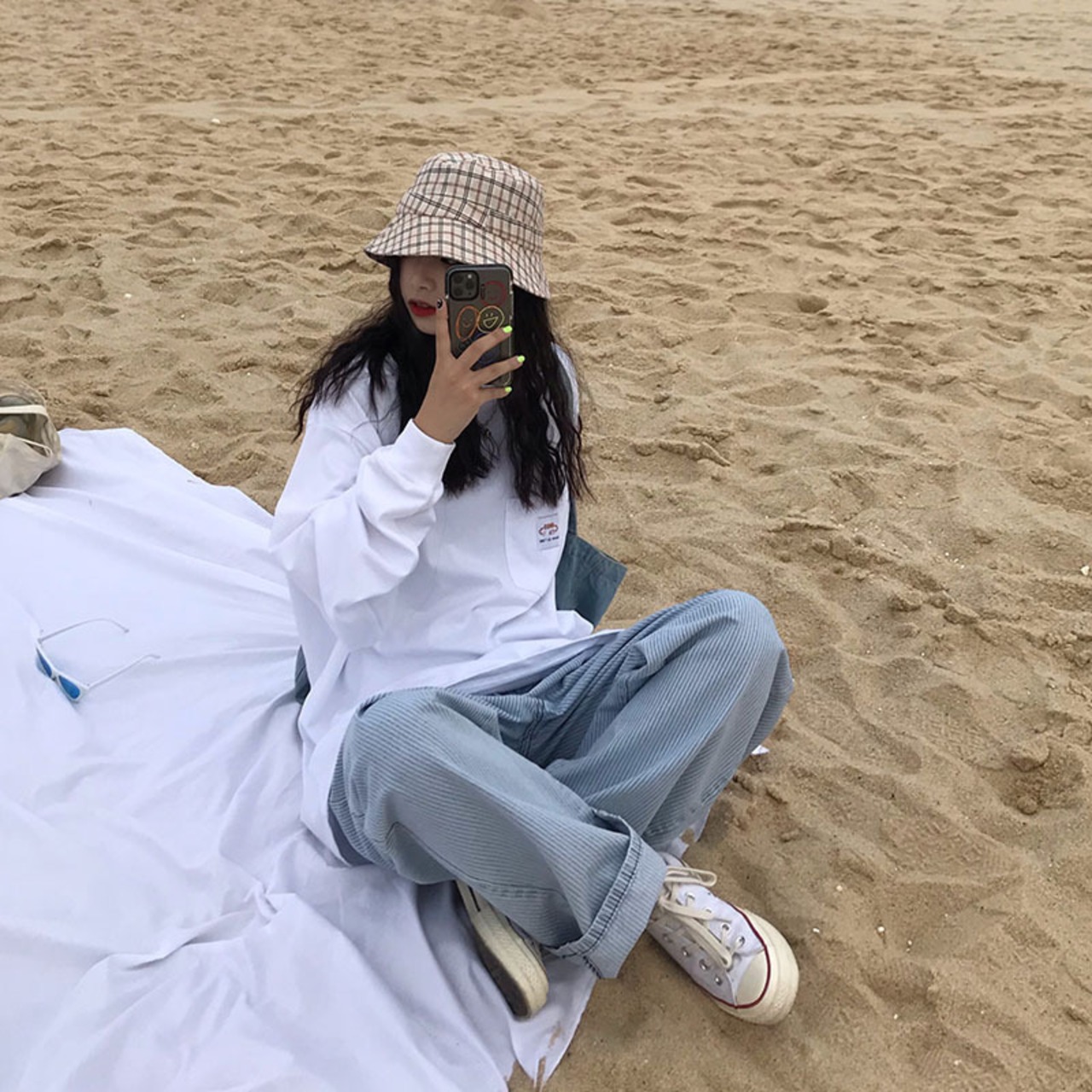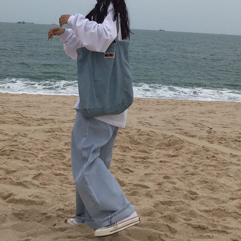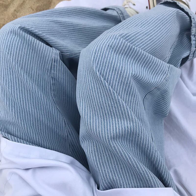 パンツ 秋物韓国ファッショントレンドブルーカジュアルルーズ薄手ハイウェストウェストワイドレッグストライプ オータム ワイドパンツ スタイル ウエスト デーモン35106194434