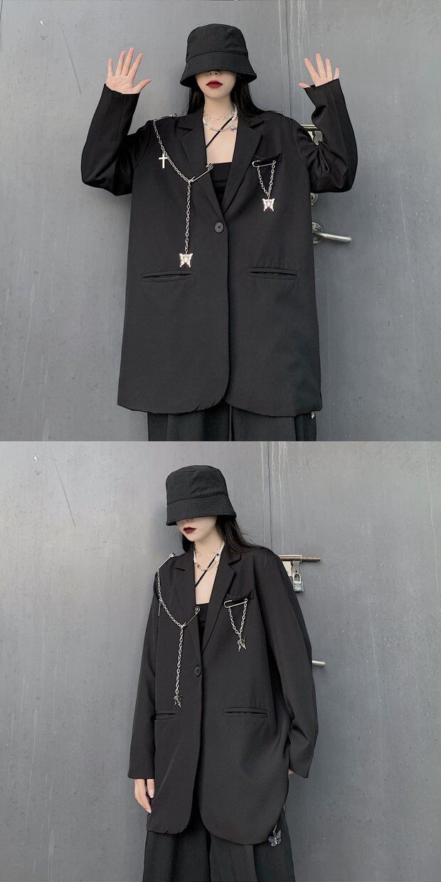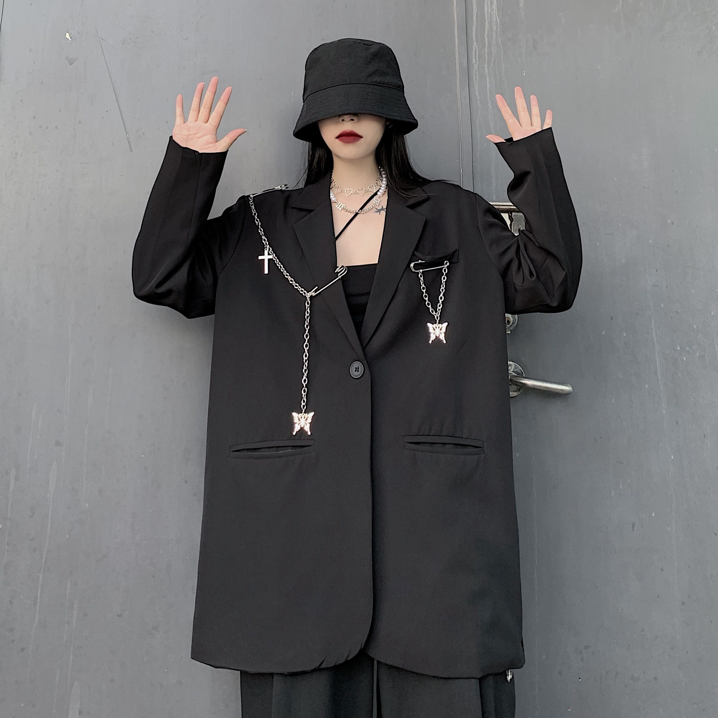 コート 秋物レディース韓国ファッショントレンドスタイルブラックルーズカジュアル ロング 原宿 オータム 長袖 デーモン44939246238
