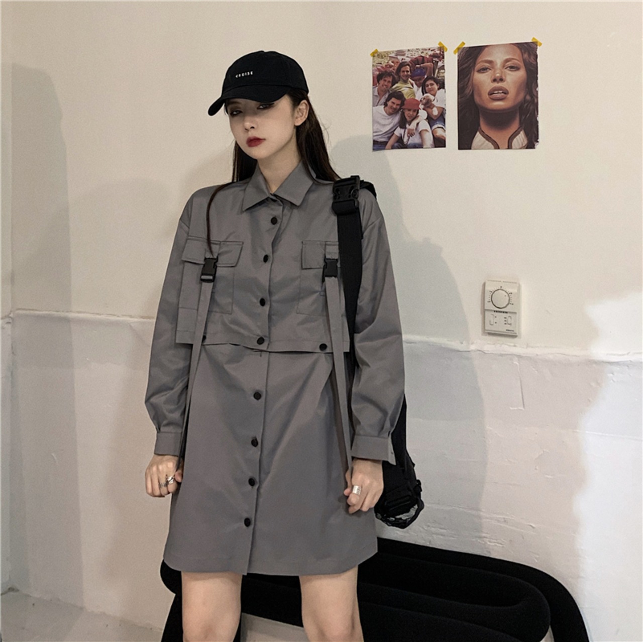 トップス 秋物韓国ファッショントレンドスタイルシャツ ルーズカジュアル ロング オータム ステッチ 長袖 デーモン48406468292