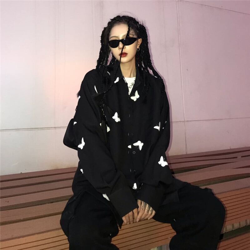 シャツ 秋物韓国ファッショントレンドダークButterflyデザイン スタイルルーズカジュアルジャケット ロング オータム ボーイズ 長袖 デーモン52586140540