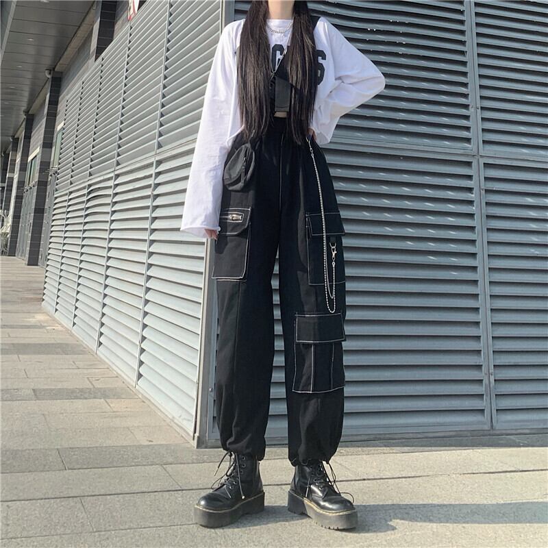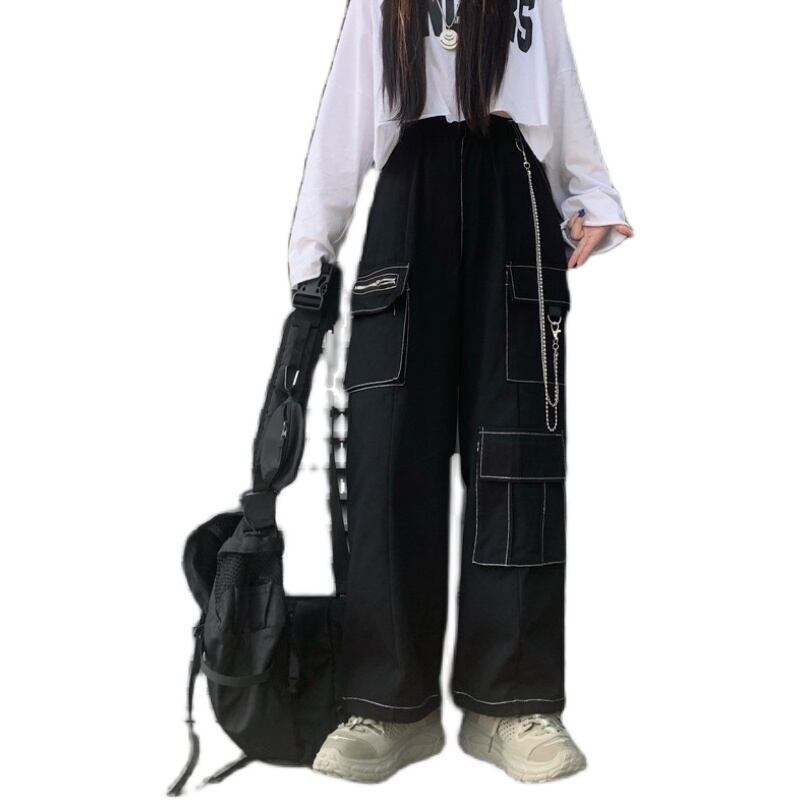 パンツレディース韓国ファッショントレンドワイドレッグパンツ ルーズハイウェストウェストカジュアル ワイドパンツ ポケット多め マルチポケット ボーイズ スタイル ウエスト デーモン53452070701