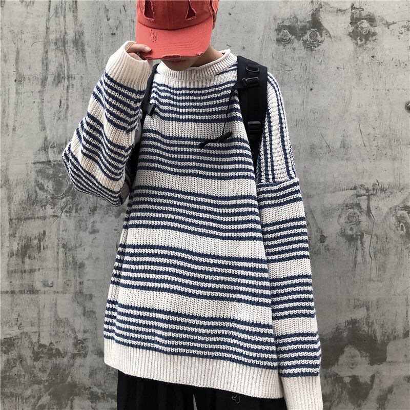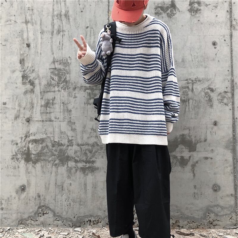 プルオーバー 秋物韓国ファッショントレンドストライプルーズセーター ロング オータム ボーイズ スタイル 長袖 デーモン70102086430