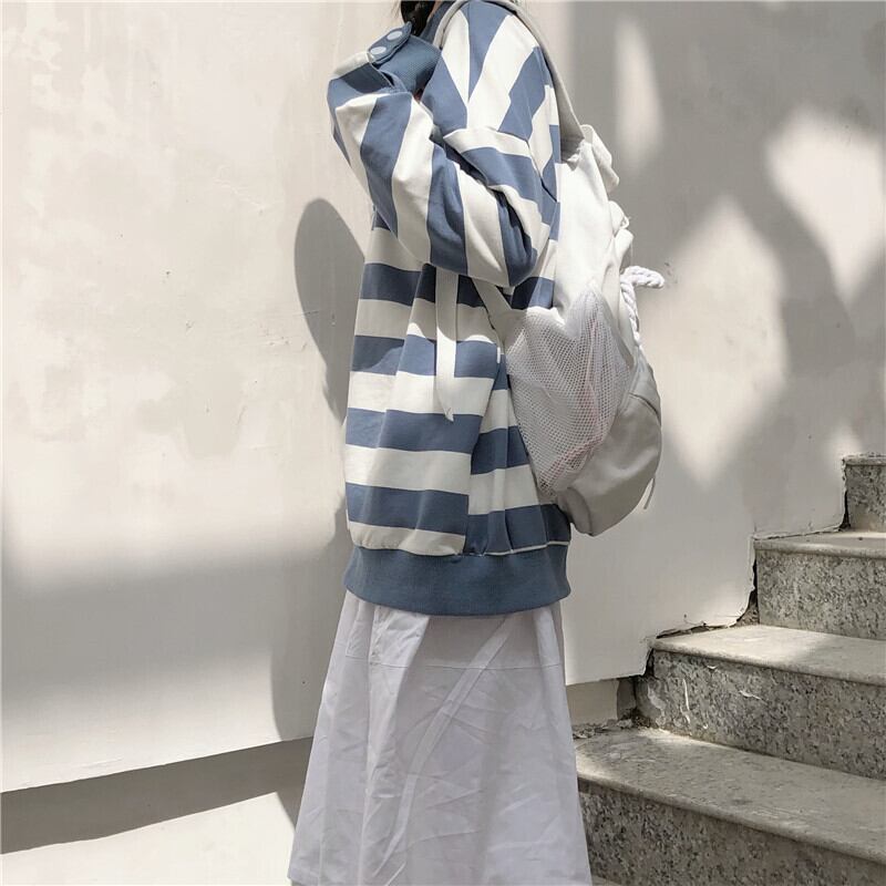 スタイルジャケット 秋物トレンド韓国ファッションスタンダードストライプセーター ルーズ薄手コート ホワイトスカート レトロ オータム デーモン99233648325