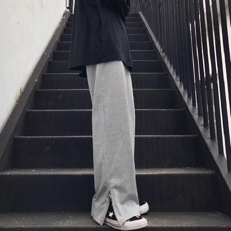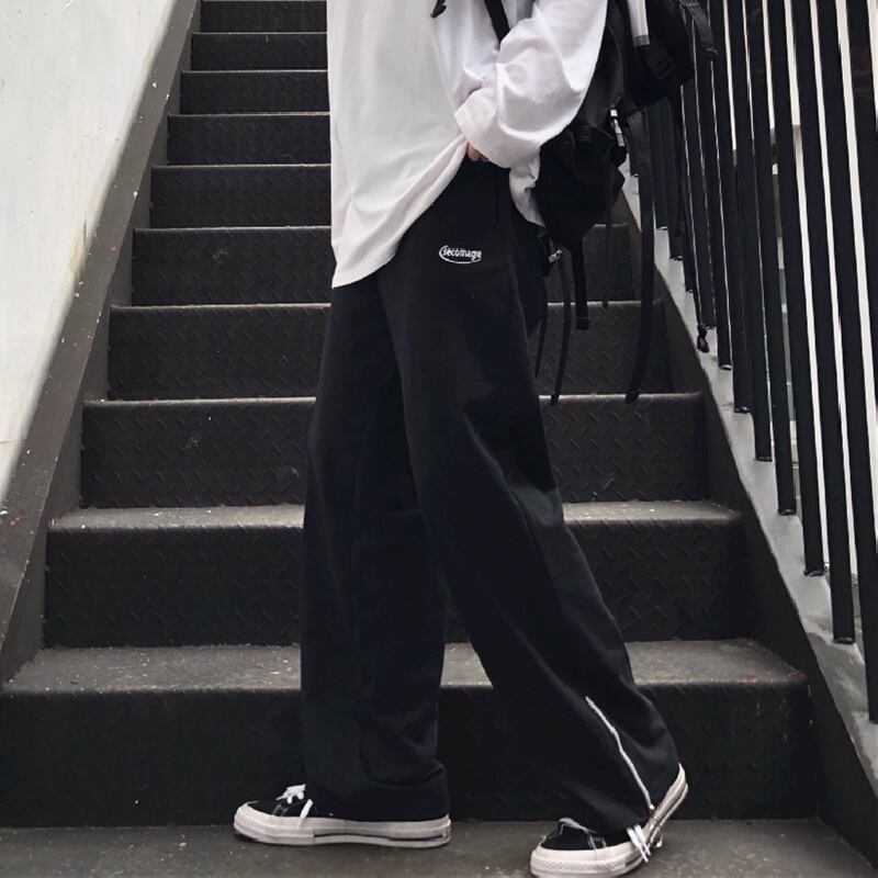 ワイドレッグパンツ レディース韓国ファッショントレンド刺繍カジュアルルーズハイウェストウェストスリム ワイドパンツ スタイル ウエスト デーモン9575380262