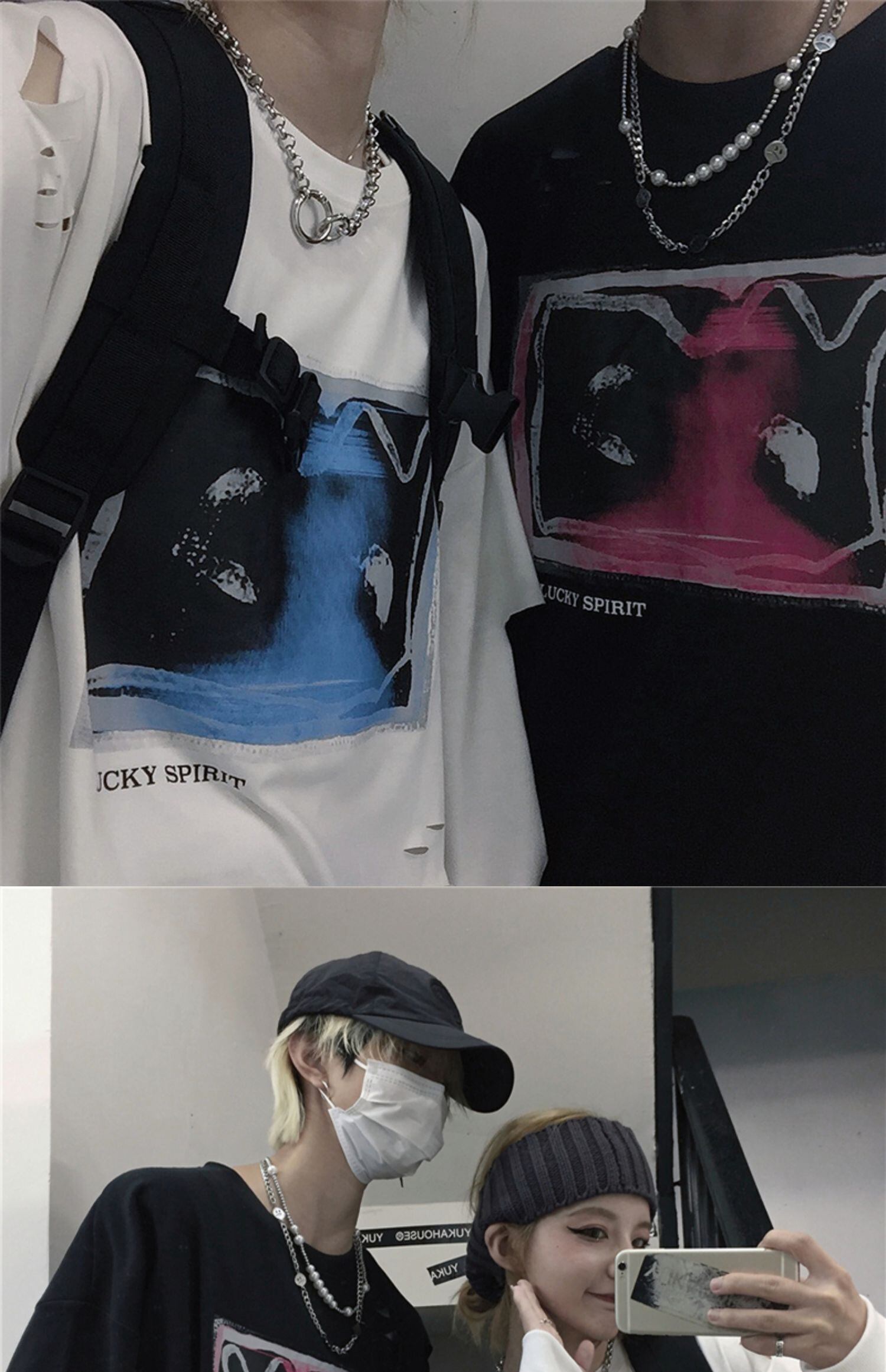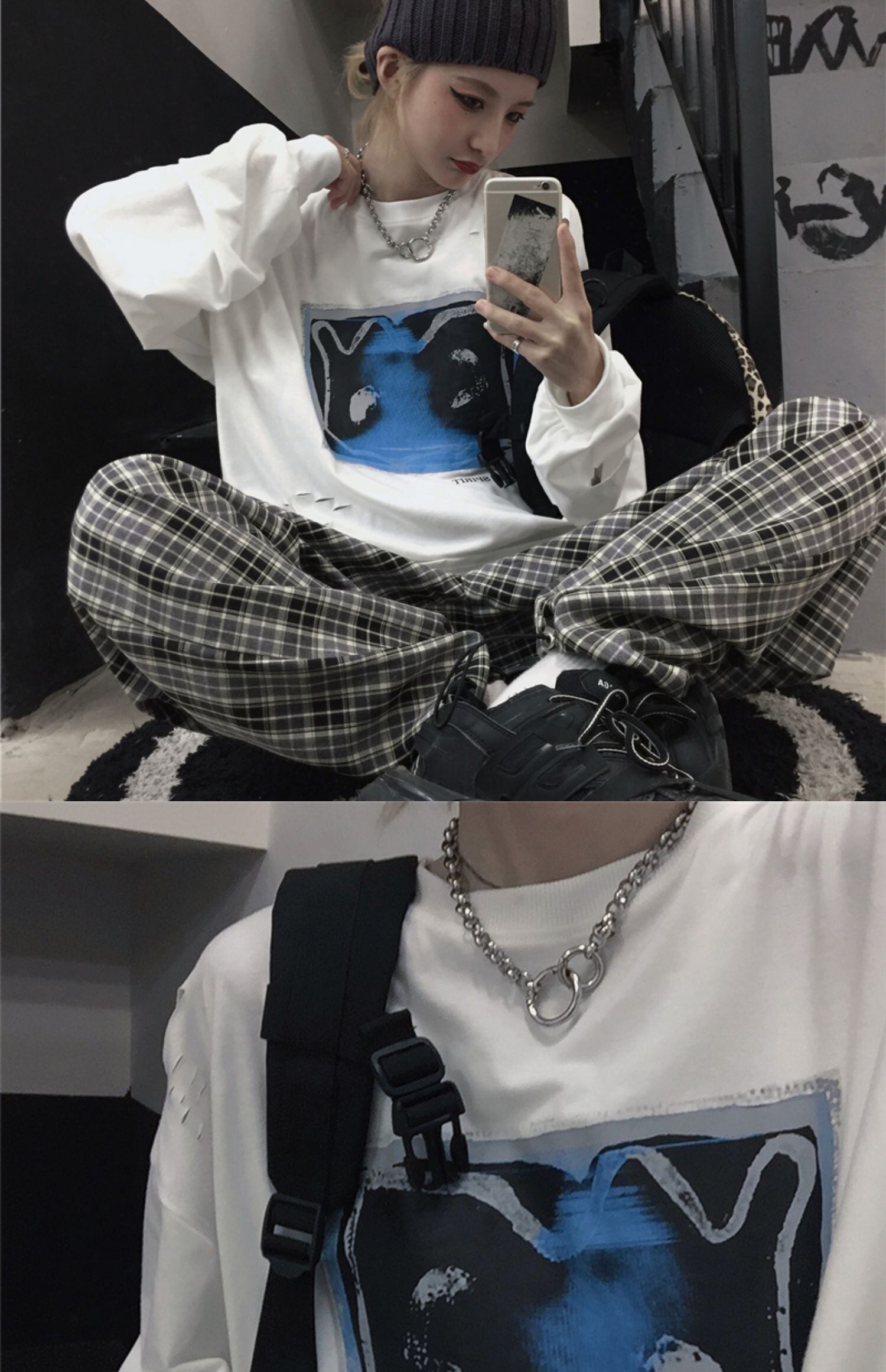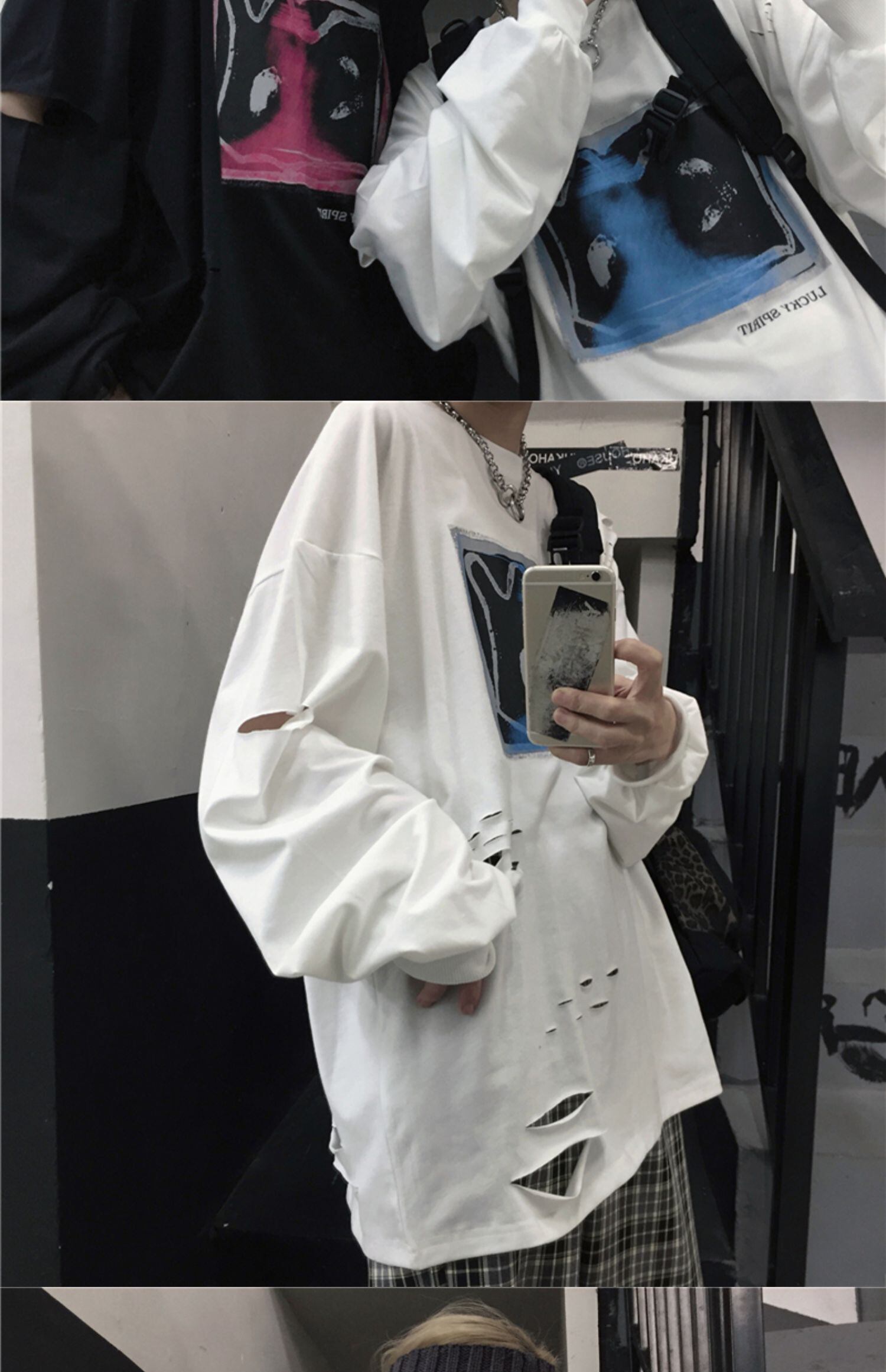 トップス レディース秋物韓国ファッショントレンドスタイルルーズラウンドネック長袖スリーブTシャツ ロング 原宿 オータム Oネック ボーイズ デーモン13394503079