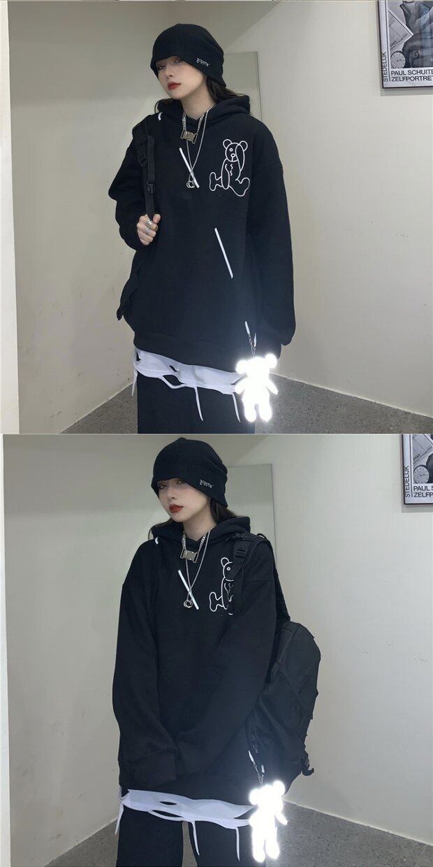 秋物ウィンターセーター 韓国ファッショントレンドルーズフードジャケット アクセサリー オータム 冬物 スタイル デーモン22192838700