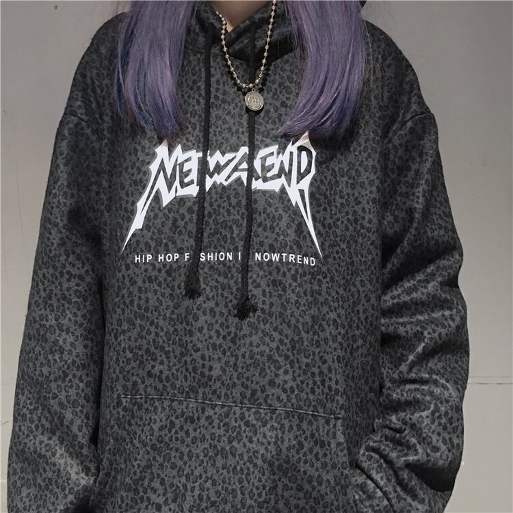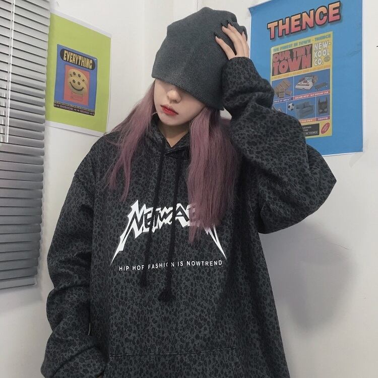 秋物トップス レディース韓国ファッショントレンドレオパードプリント柄セーター ルーズフードジャケット ロング 原宿 オータム ボーイズ スタイル 長袖 デーモン23333901844