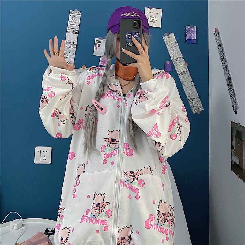 秋物ウィンターセーター レディース韓国ファッショントレンドスタイルトップス ルーズフードジャケット ロング 原宿 オータム 冬物 ボーイズ 長袖 デーモン24253080028