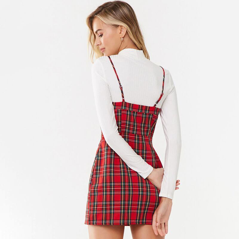 レッド格子柄スカート 秋物ウィンターワンピース 大人ガーリー スウィート キュート カジュアル オータム 冬物 ヨーロピアン YU71493676869