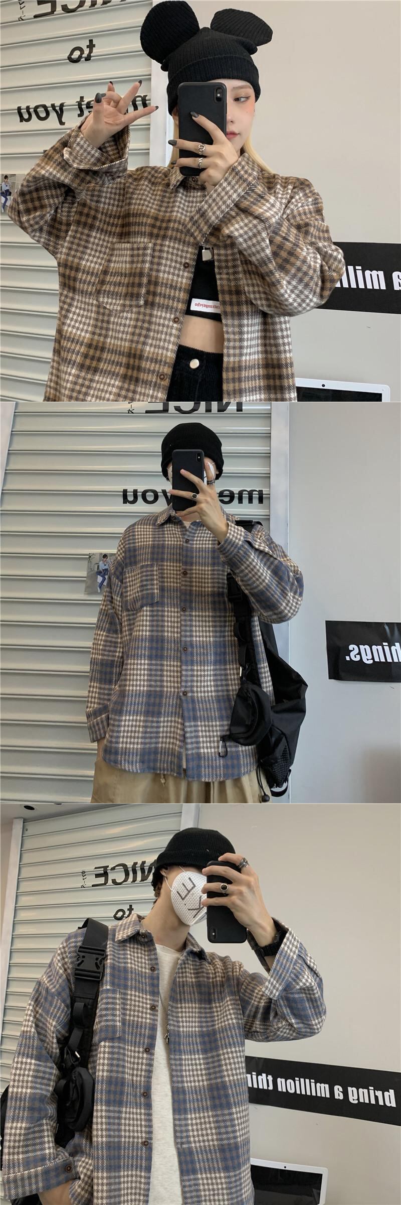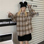 ジャケット 秋物韓国ファッショントレンドスタイルスタンダード格子柄シャツ レディース ロング レトロ オータム 長袖 デーモン48610004760