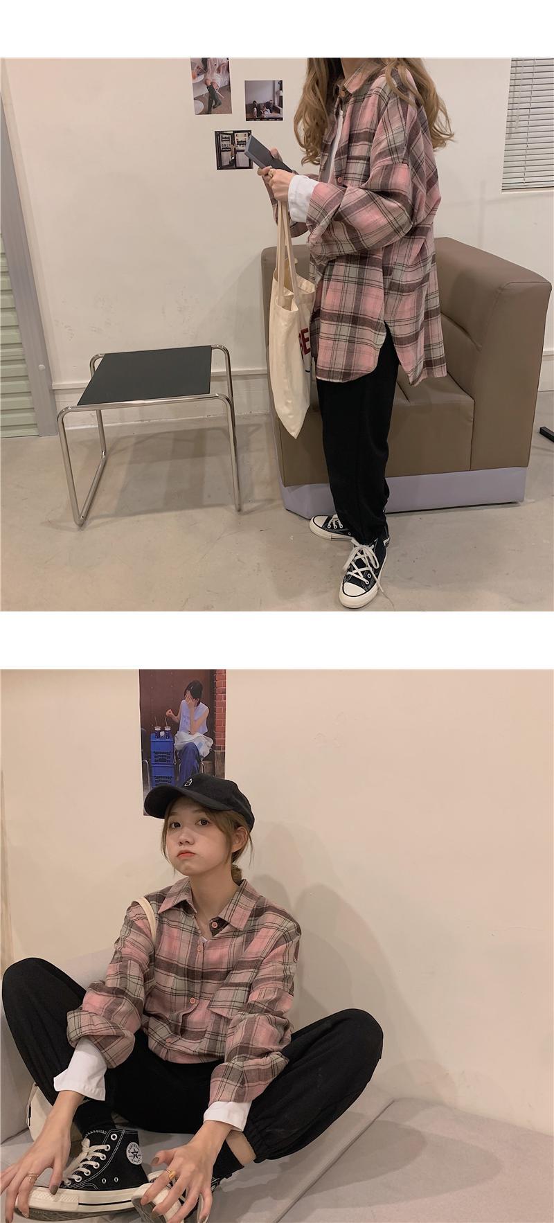 シャツ秋物韓国ファッショントレンドスタンダード格子柄ルーズトップス コート ロング レトロ オータム ボーイズ スタイル 長袖 デーモン57952200419