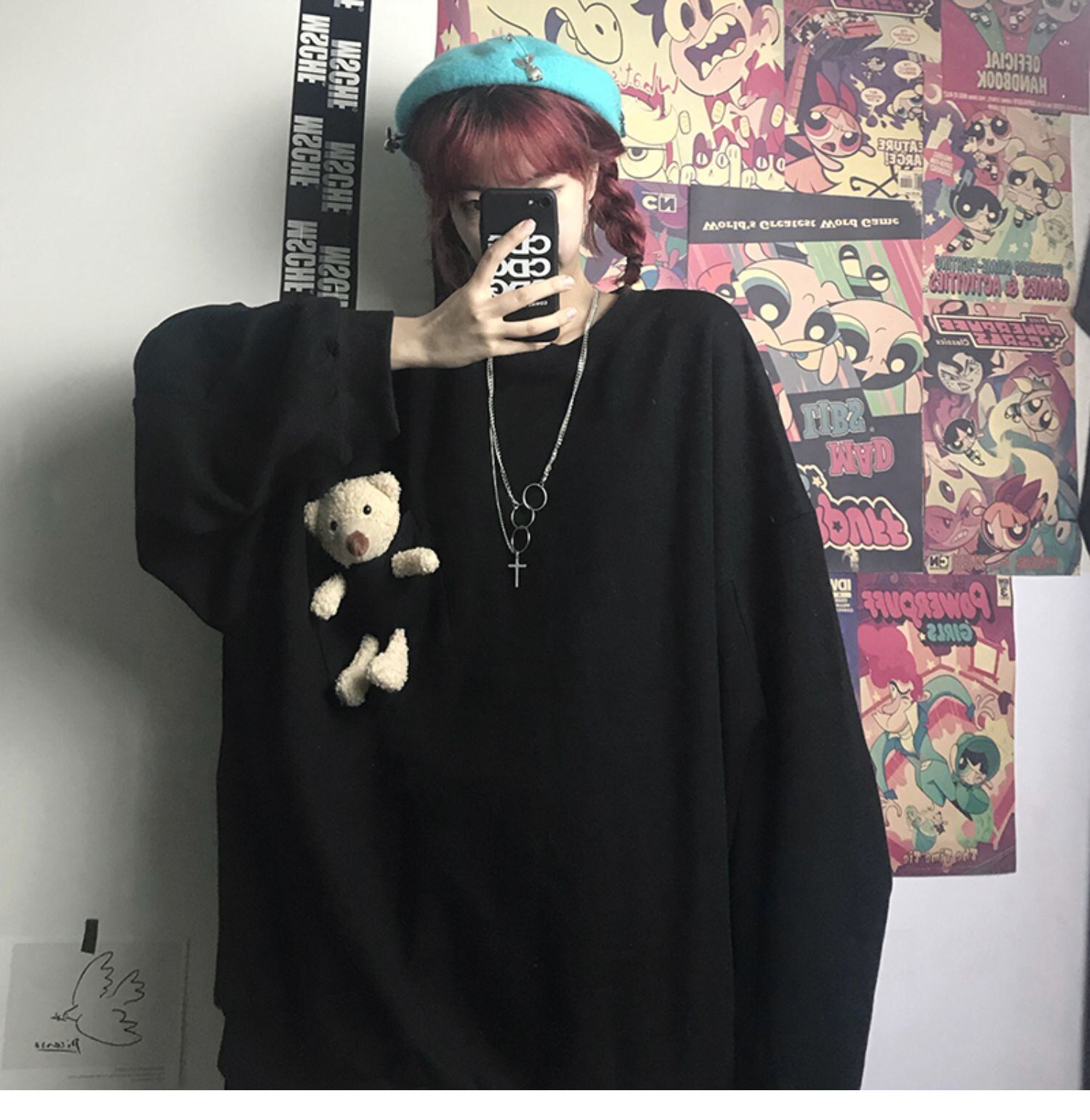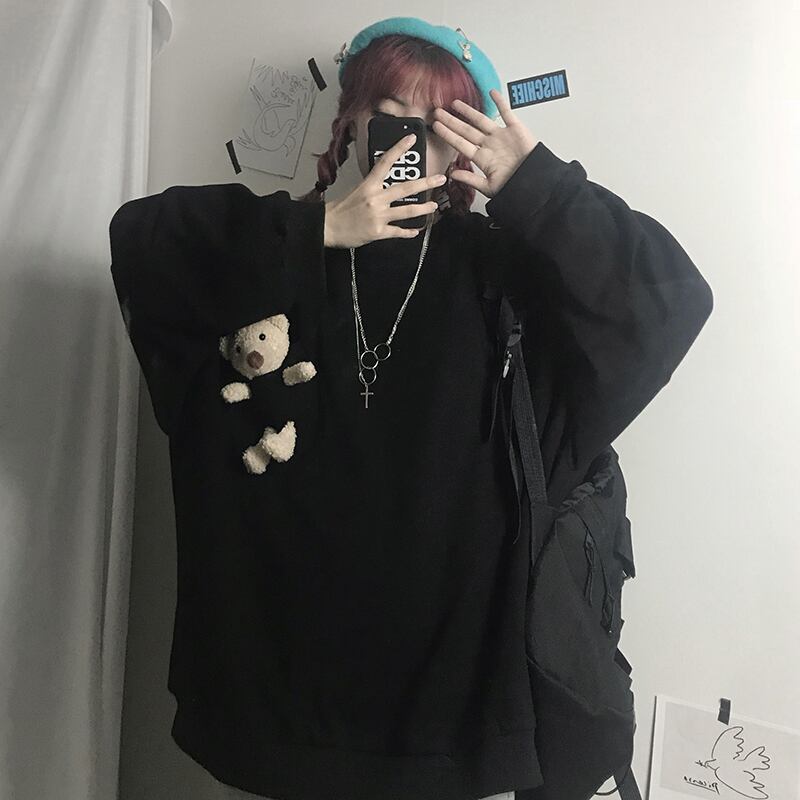 秋物韓国ファッショントレンドプルオーバー セーター ルーズ薄手ブラックトップス レディース オータム スタイル デーモン24440363791