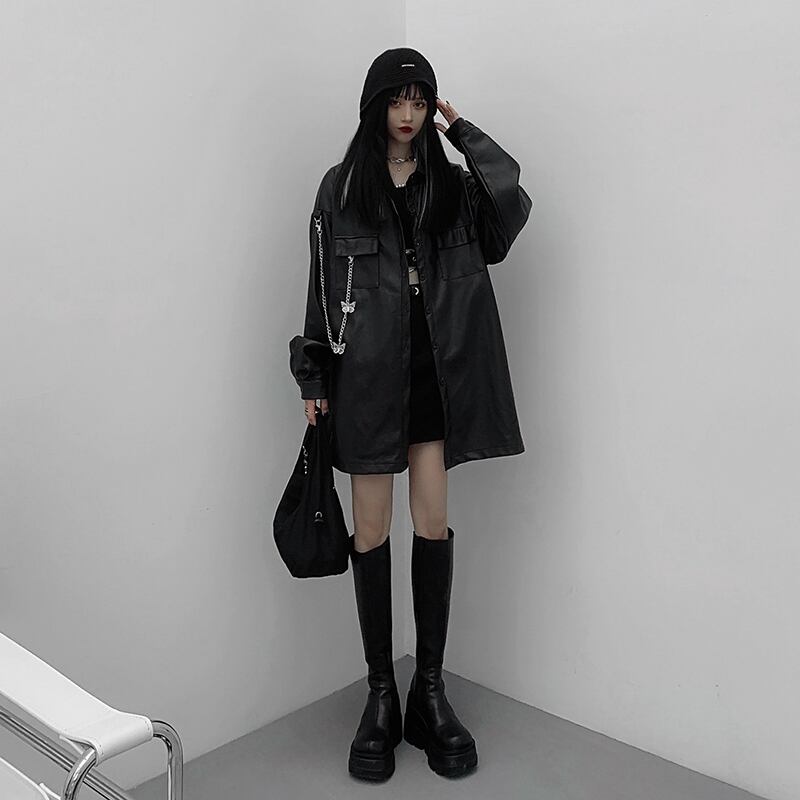 秋物ジャケット レディース韓国ファッショントレンドダークスタンダード厚みルーズレザーシャツ レトロ オータム スタイル デーモン19276735843