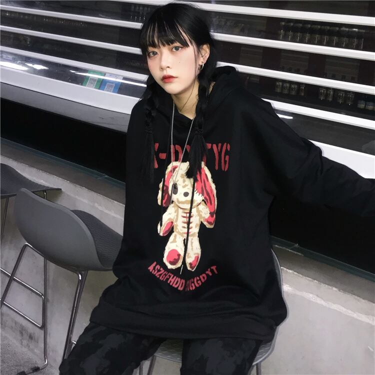 セーター レディース秋物ウィンター韓国ファッショントレンドダークプリント柄ルーズフードジャケット オータム 冬物 ボーイズ スタイル デーモン30634139027