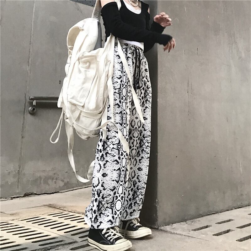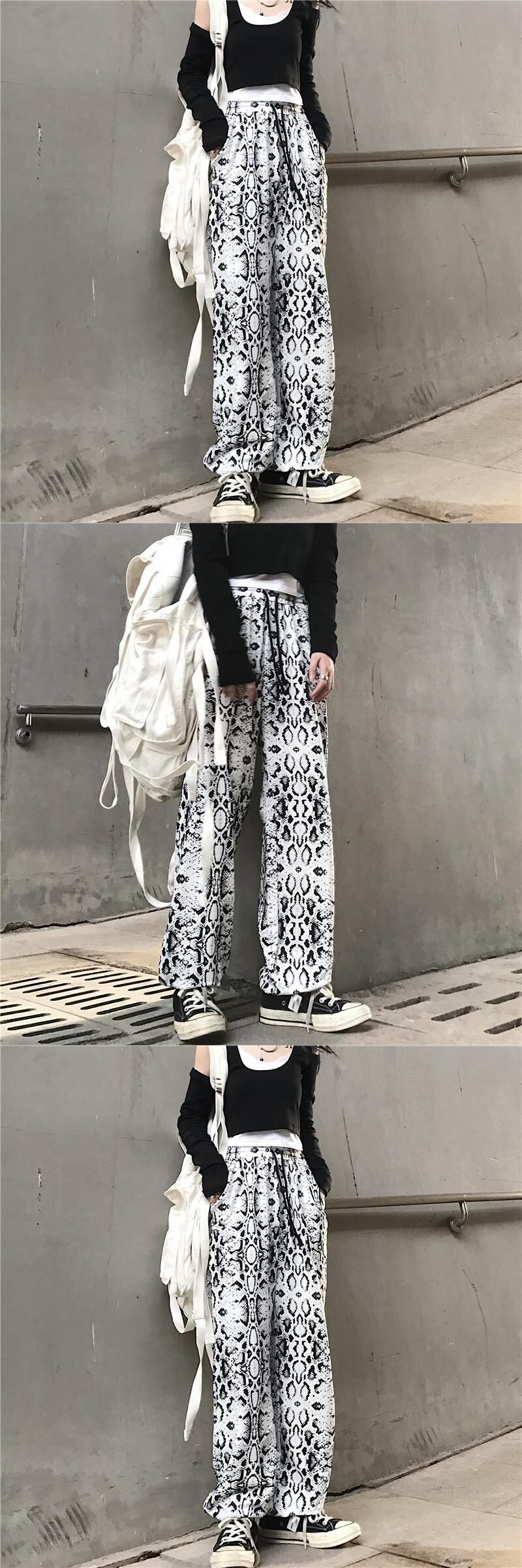パンツ レディース韓国ファッショントレンドスネークパターンワイドレッグハイウェストウェストルーズ薄手 ストリート ワイドパンツ ボーイズ スタイル ウエスト デーモン72620997257