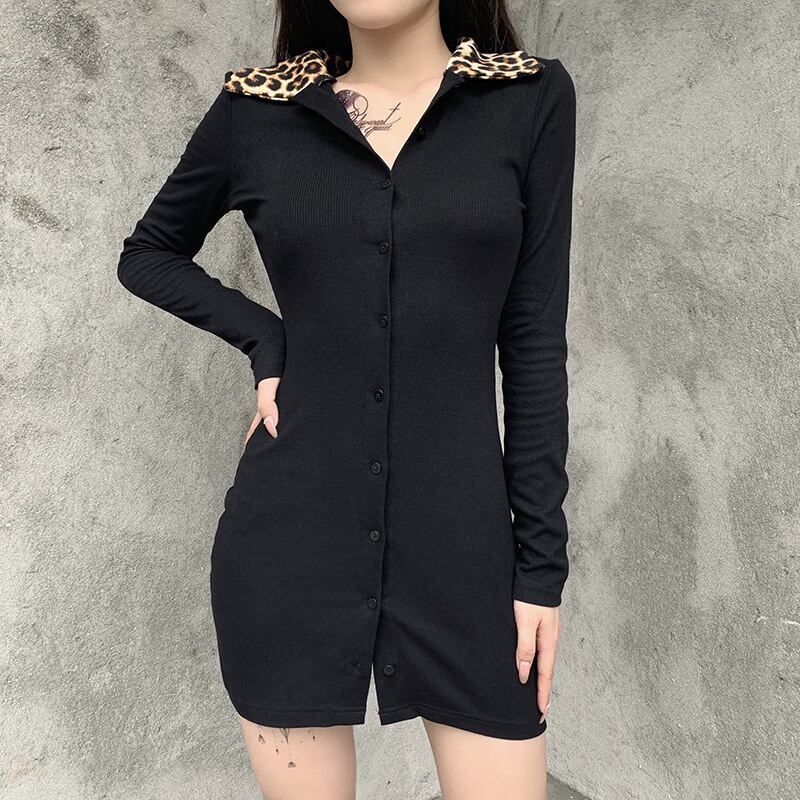 秋物ウィンターウェストカラートレンドワンピースレディースレオパード オータム 冬物 スカート ステッチ ウエスト YU62362587634