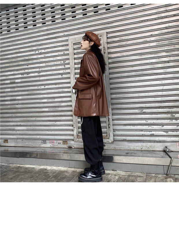 秋物レディース韓国ファッショントレンドスタイルスタンダードレザージャケット ルーズカジュアル レトロ オータム ボーイズ デーモン24167257342