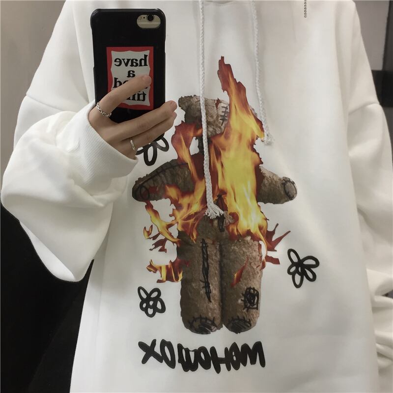 プリントフード厚みセーター メンズレディース デーモン21248912659