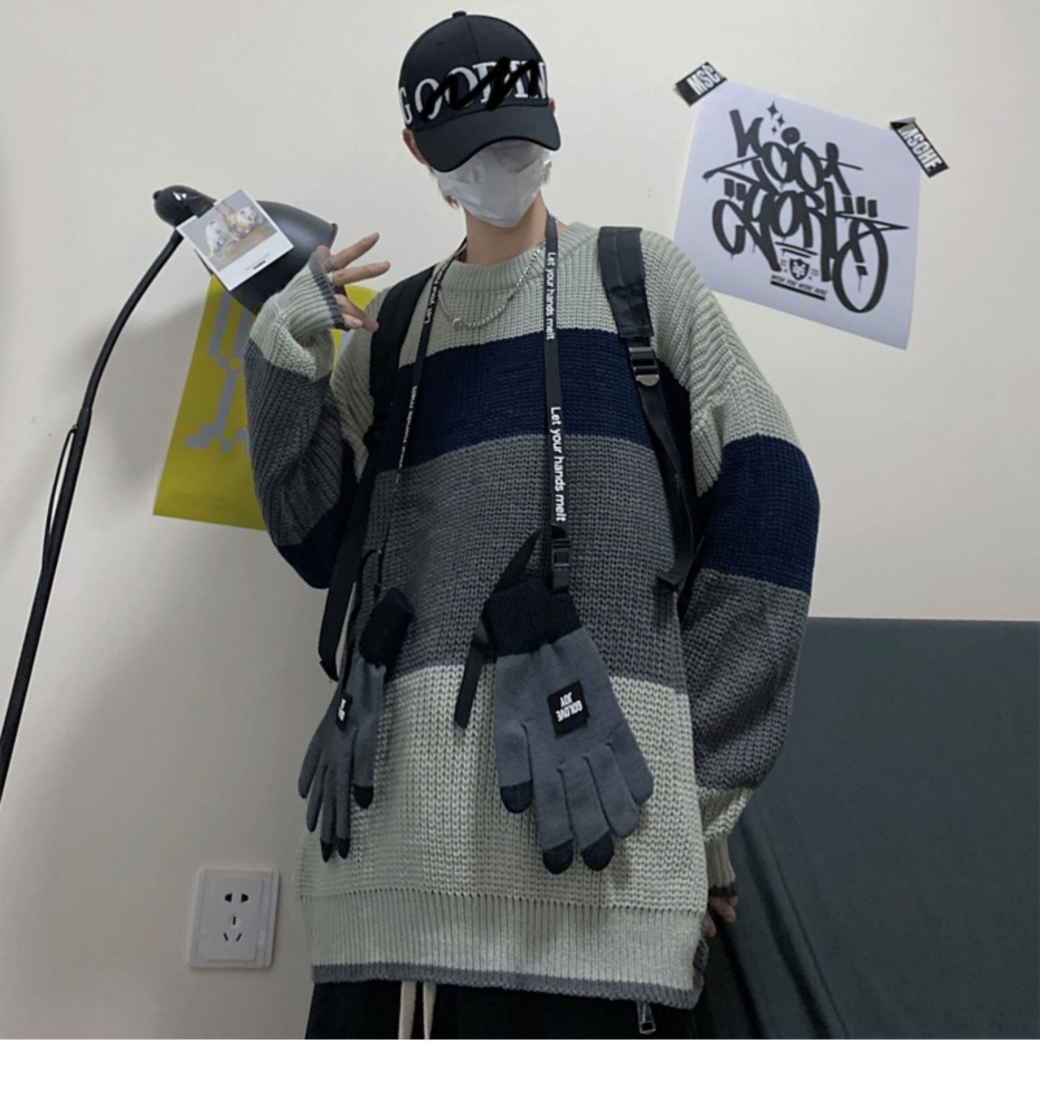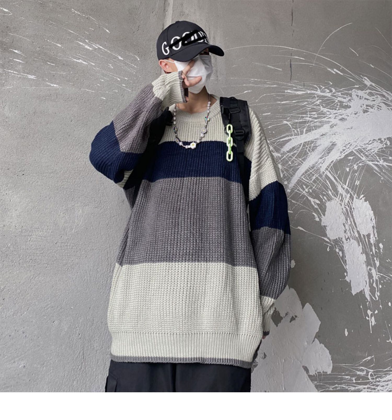 秋物ウィンターセーター 韓国ファッショントレンドストライプルーズコート 原宿 オータム 冬物 ボーイズ スタイル デーモン91875213463