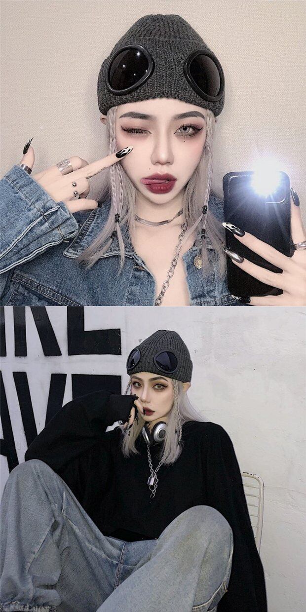 秋物ウィンターレディース韓国ファッショントレンドニットブラックウール 帽子 オータム 冬物 スタイル デーモン74346086528