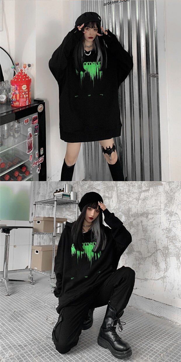 セーター レディース韓国ファッショントレンドスタイルプリントルーズプルオーバー フードジャケット 原宿 オータム 秋物 ウィンター 冬物 デーモン2029867165