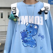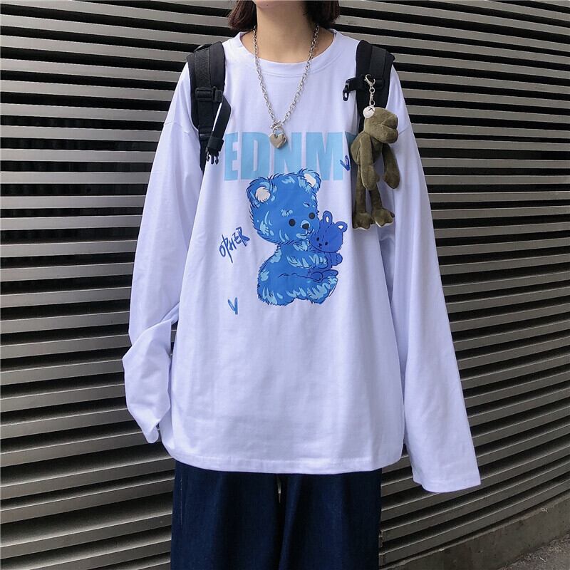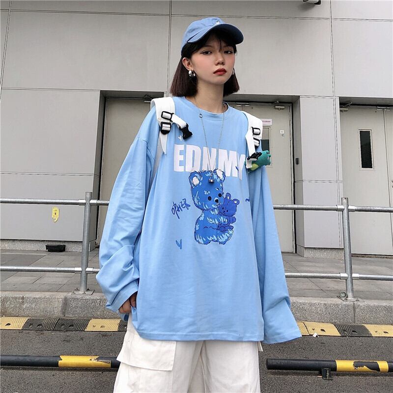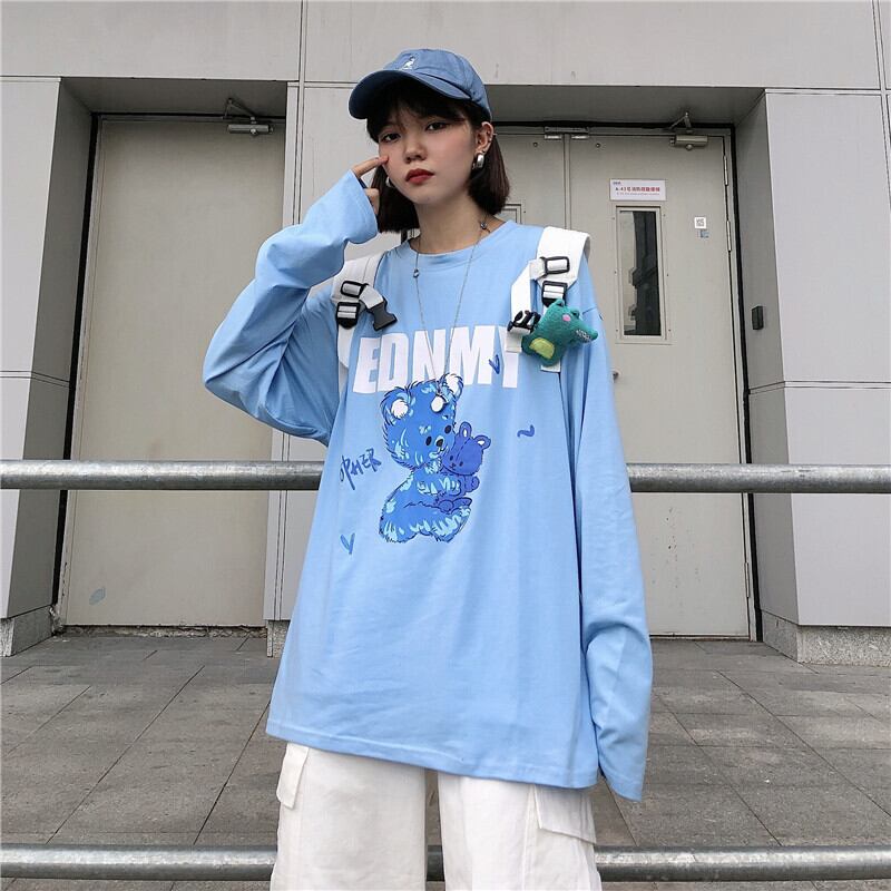 トレンドトップス 韓国ファッションプリント柄ゆったりシャツ 秋物薄手ルーズTシャツ ロング オータム ボーイズ スタイル 長袖 デーモン28710427827